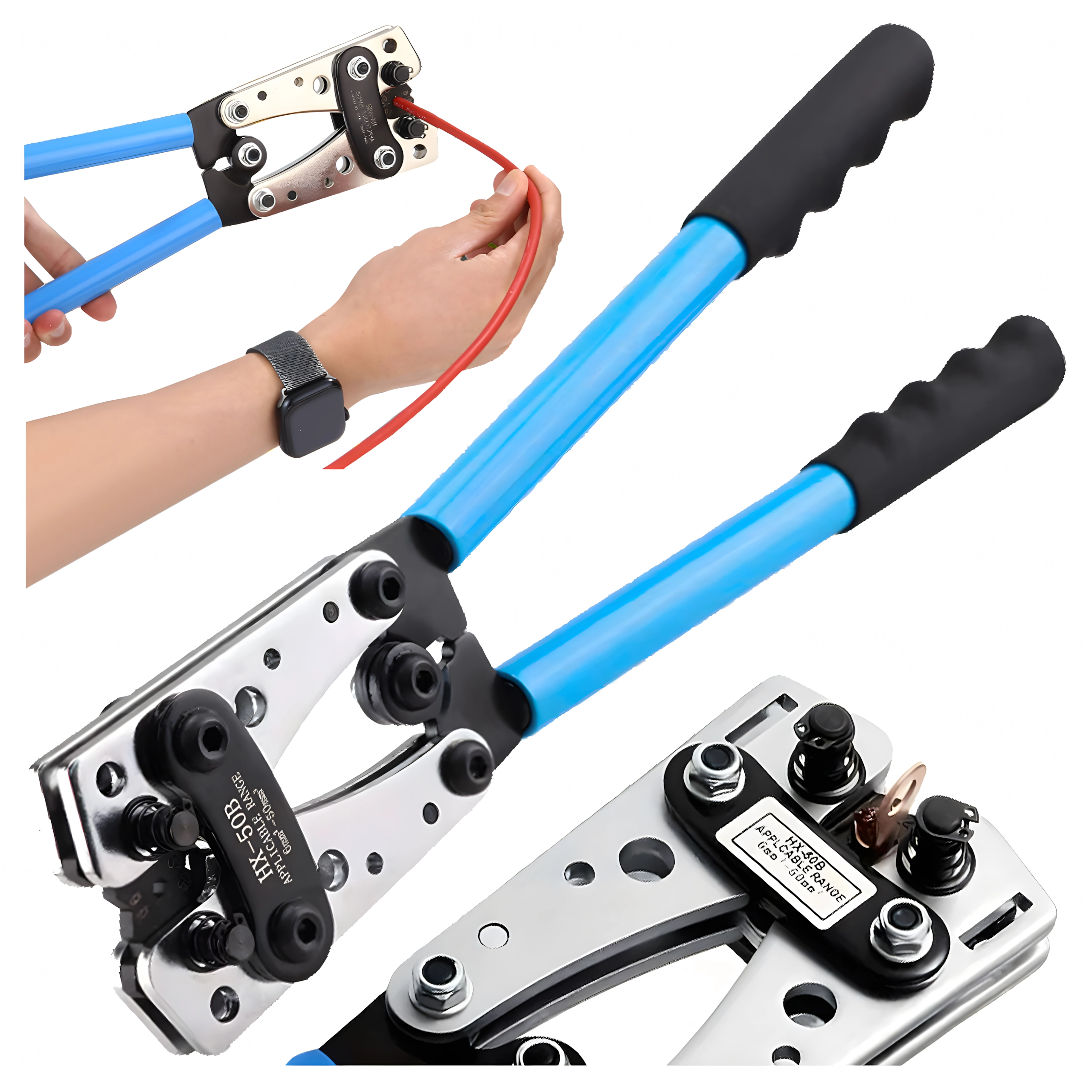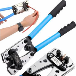 Construcția grea din oțel cu brațe lungi și prinderi antiderapante sporește confortul și siguranța la lucru în tablouri, atelier sau pe șantier. Unealta este potrivită pentru papuci din cupru și aluminiu și tubulețe, ideală pentru electricieni, mecanici și utilizatori hobby exigenți.