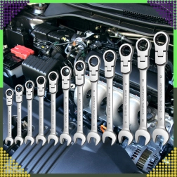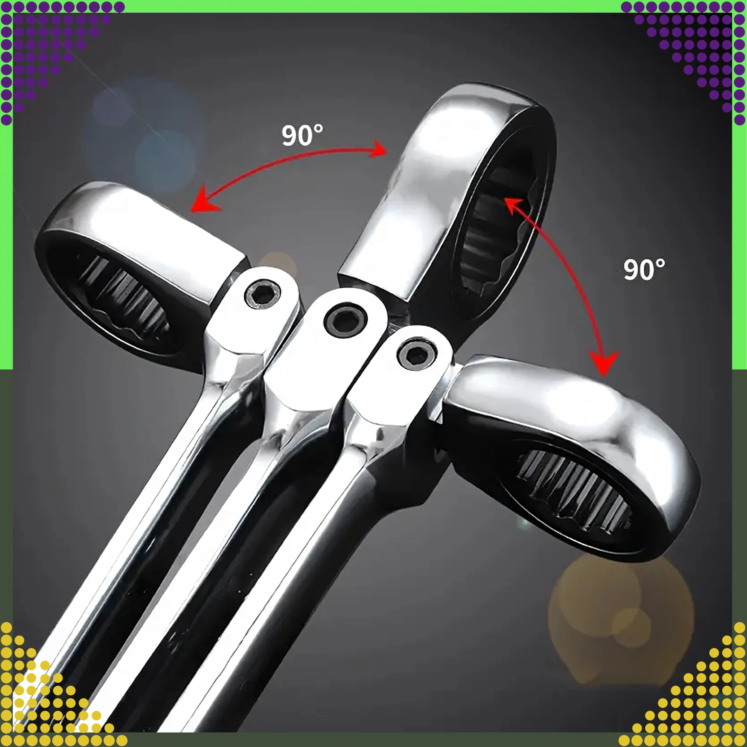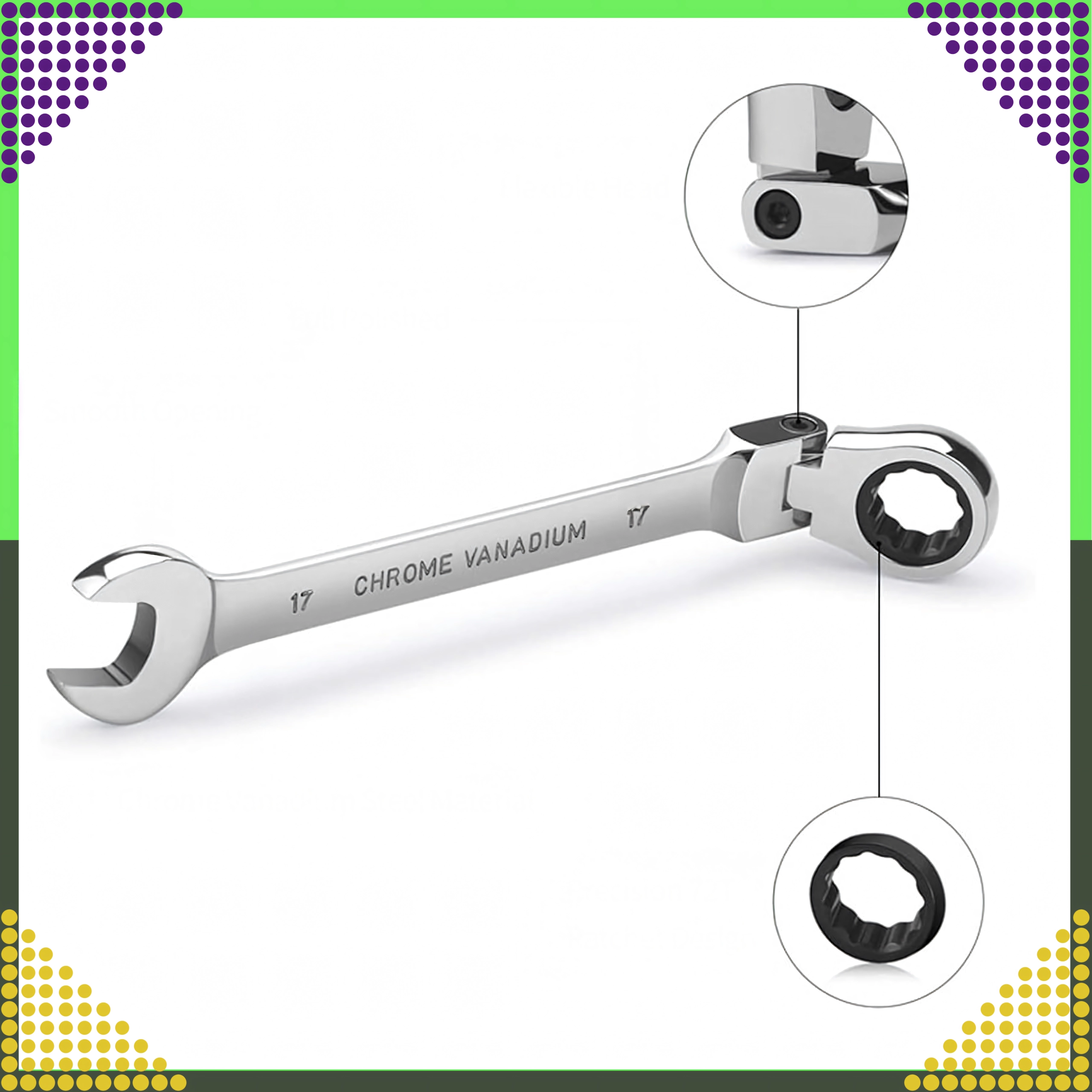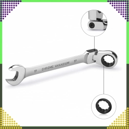Capătul inelar cu clichet accelerează strângerea și desfacerea fără a regla constant cheia, ideal în spațiile înguste ale motorului sau ale cadrului bicicletei.