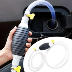 Pompă sifon manuală practică, cu furtun de 1 m, permite pomparea rapidă și sigură a combustibilului, uleiului, motorinei, apei și a altor lichide. Datorită supapei de sens previne refluxul și ușurează pornirea fluxului. Este compactă, durabilă și ușor de folosit – ideală pentru casă, garaj și atelier.