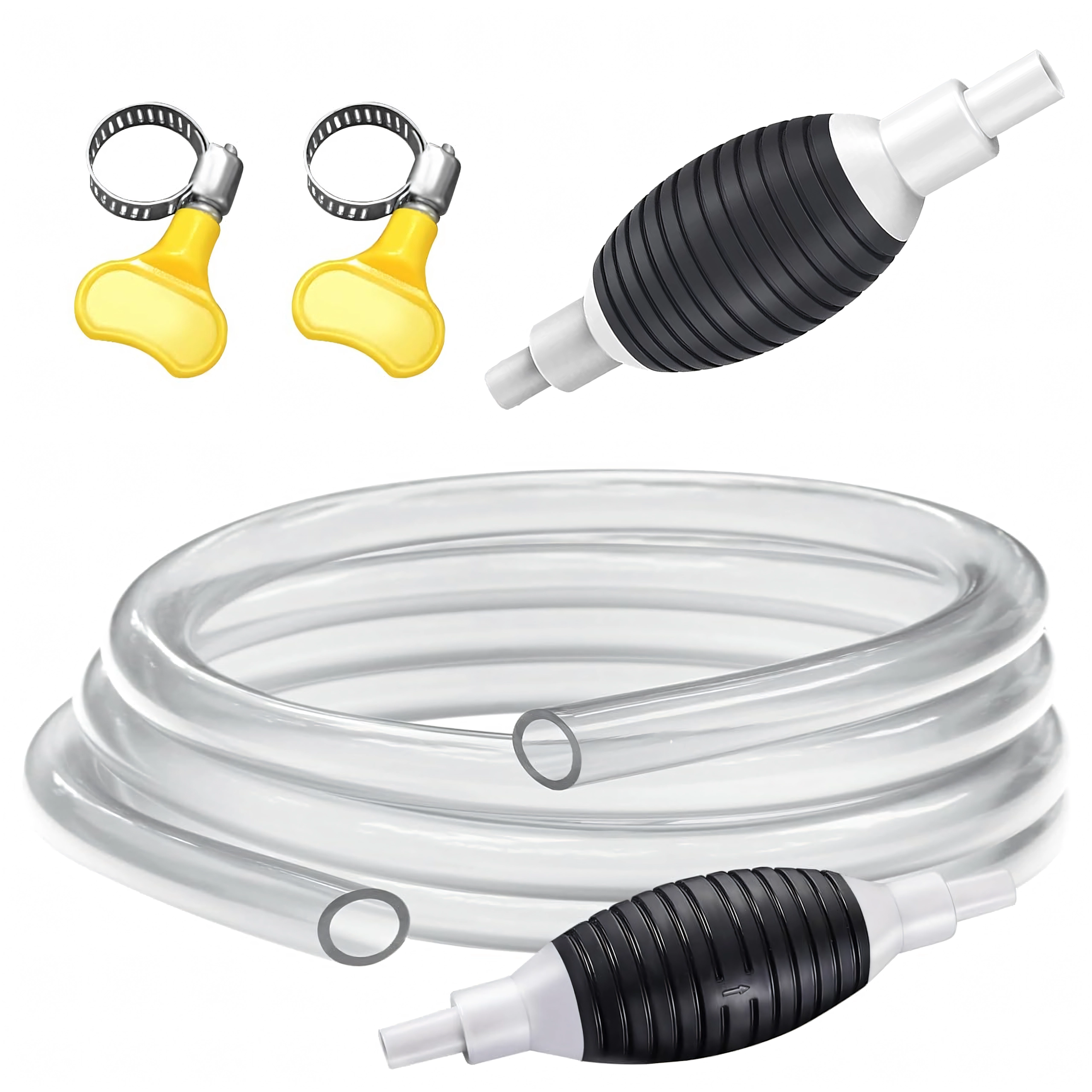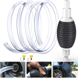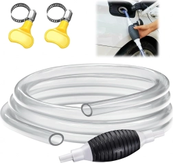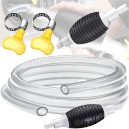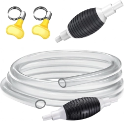 Pompa manuală cu balon de strângere și furtun transparent este o soluție fiabilă pentru transferul lichidelor între recipiente, din rezervoare sau acvarii. Furtunul transparent permite control vizual al debitului, iar supapa de sens integrată previne întoarcerea nedorită a lichidului.
