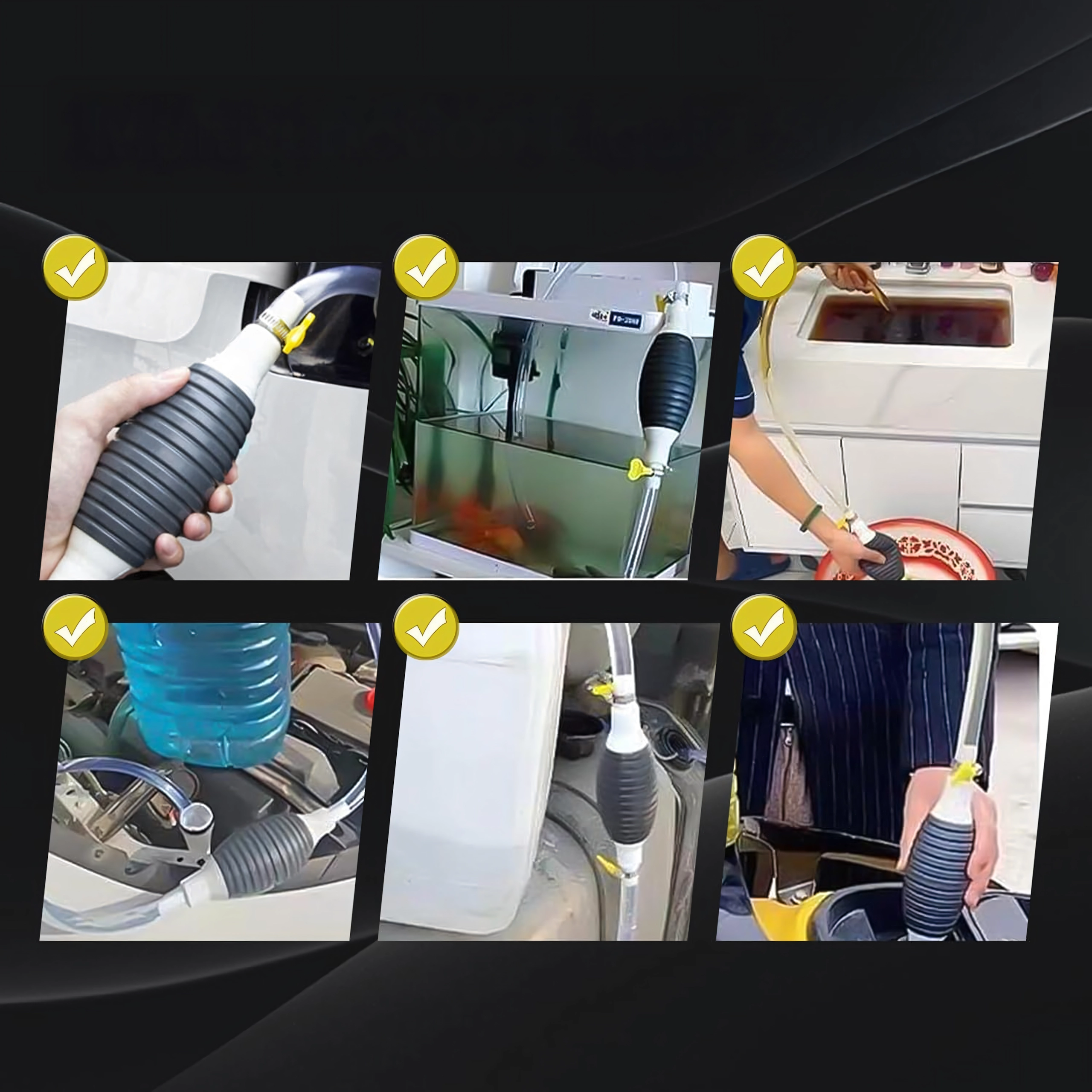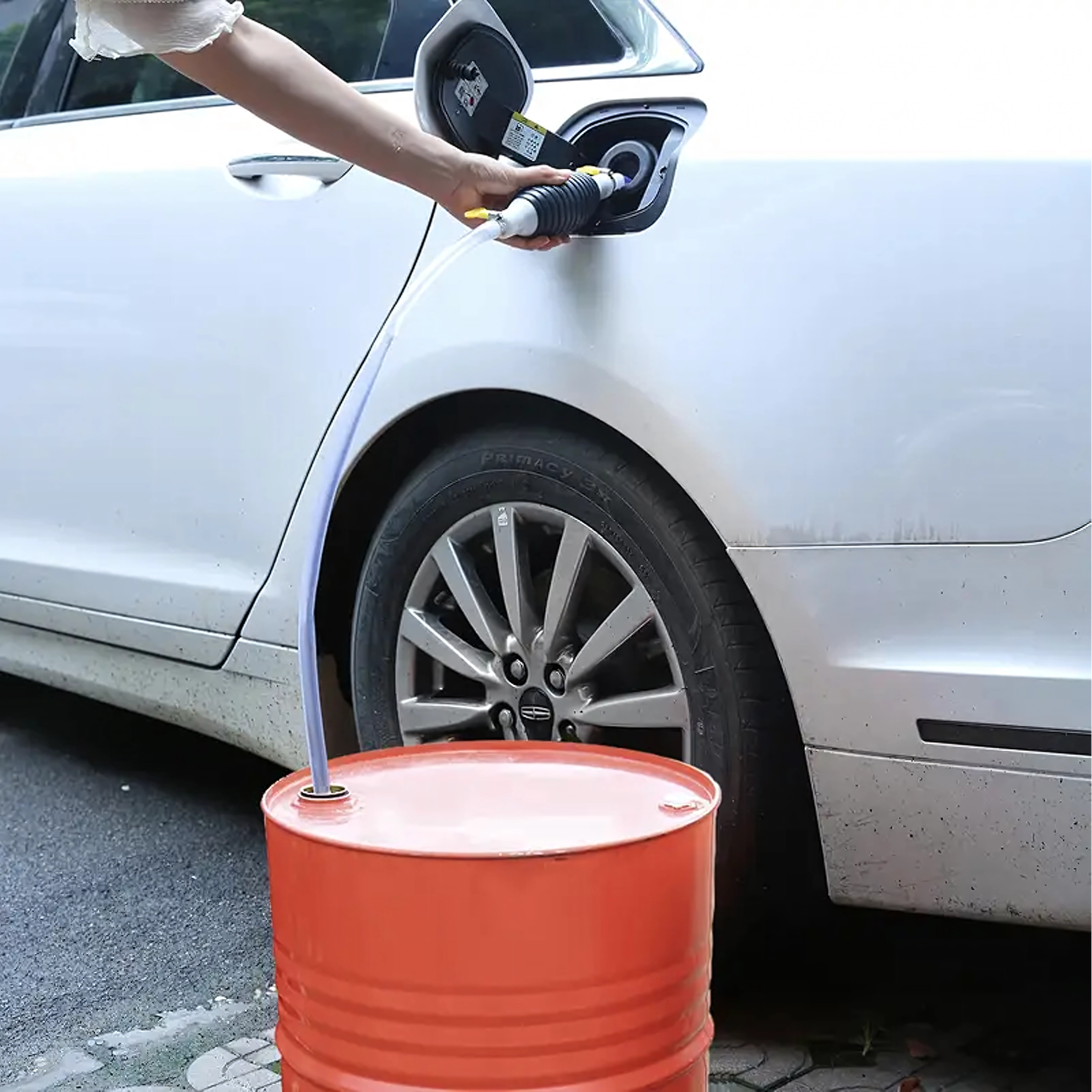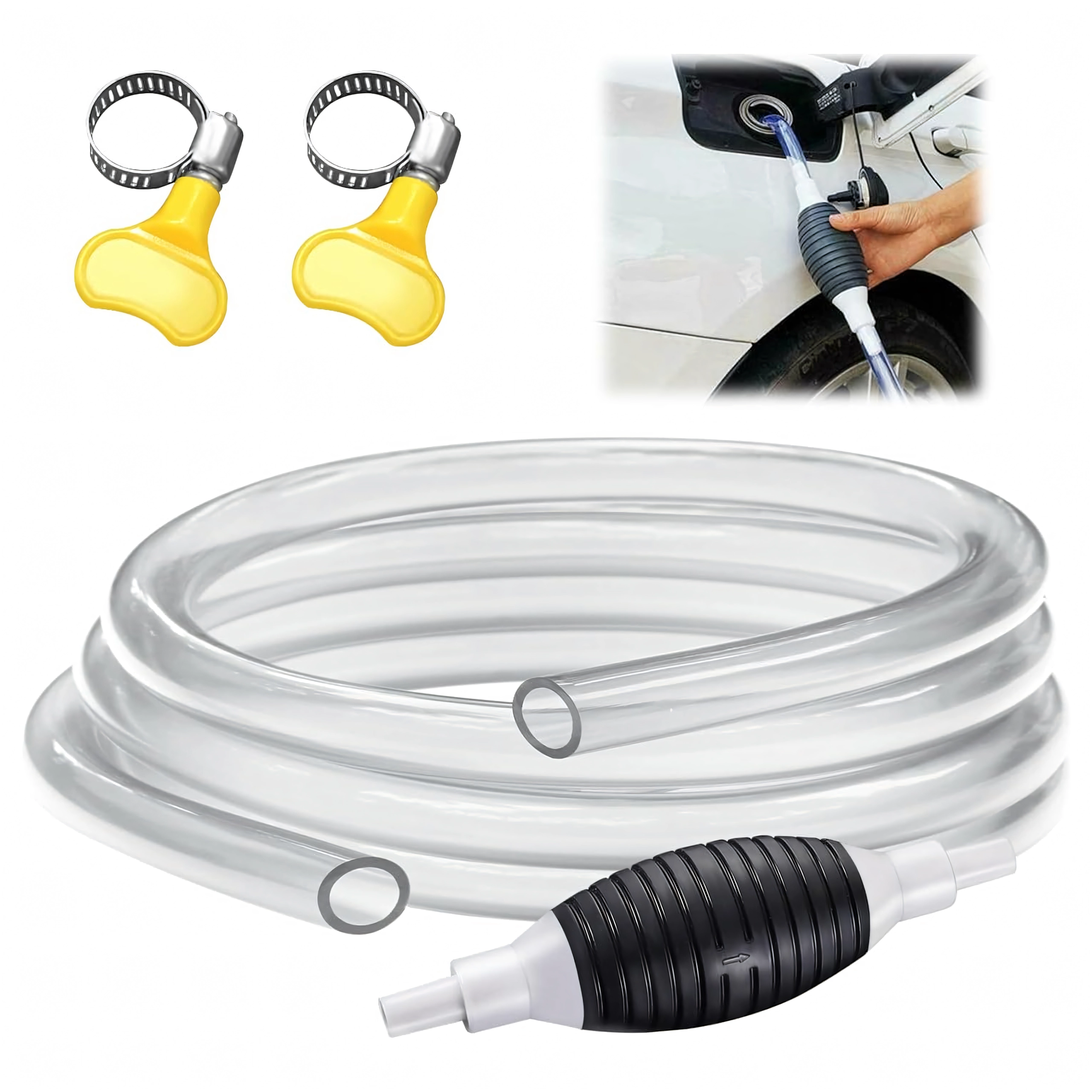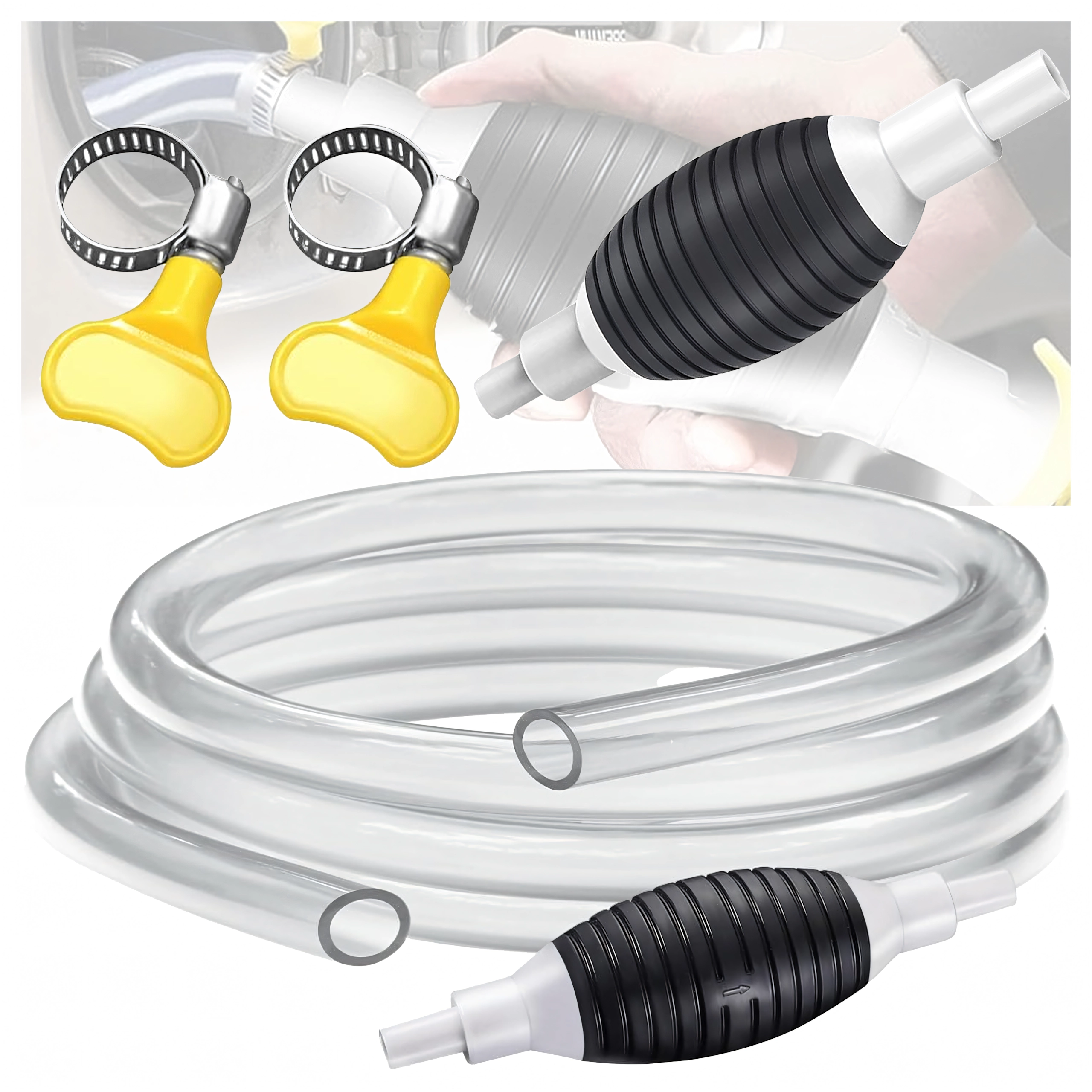 Balonul de strângere creează instantaneu vid și pornește fluxul fără vărsare. Furtunul transparent permite controlul debitului și prevenirea revărsării.