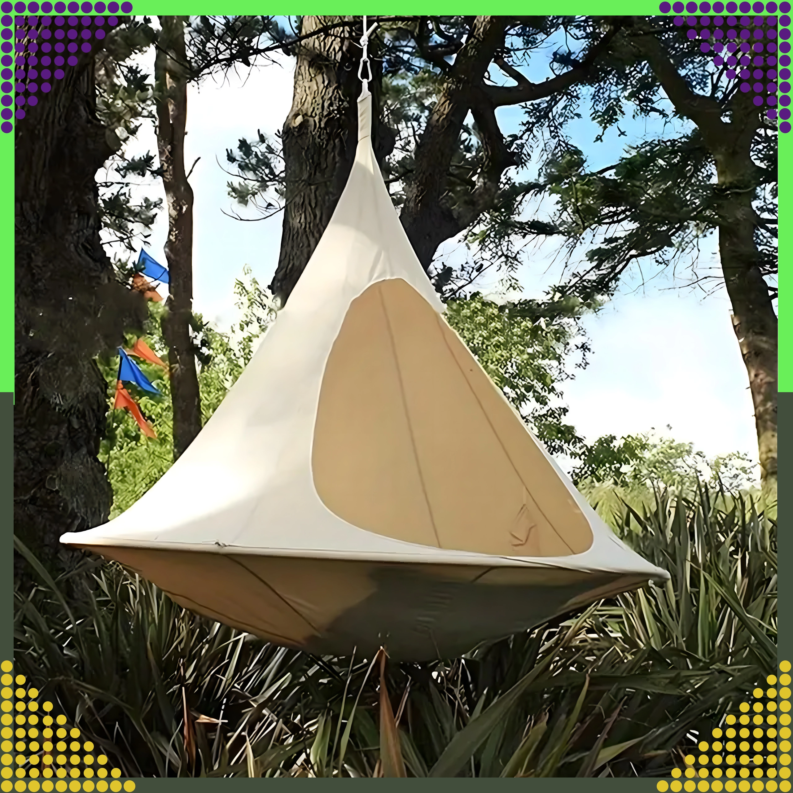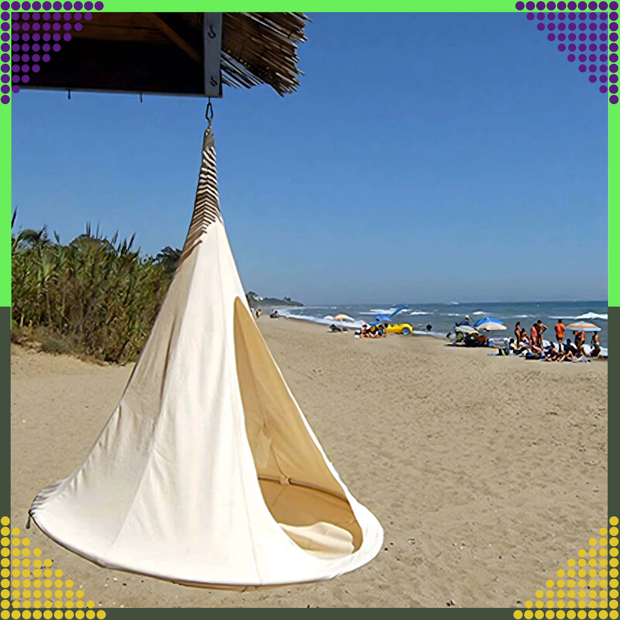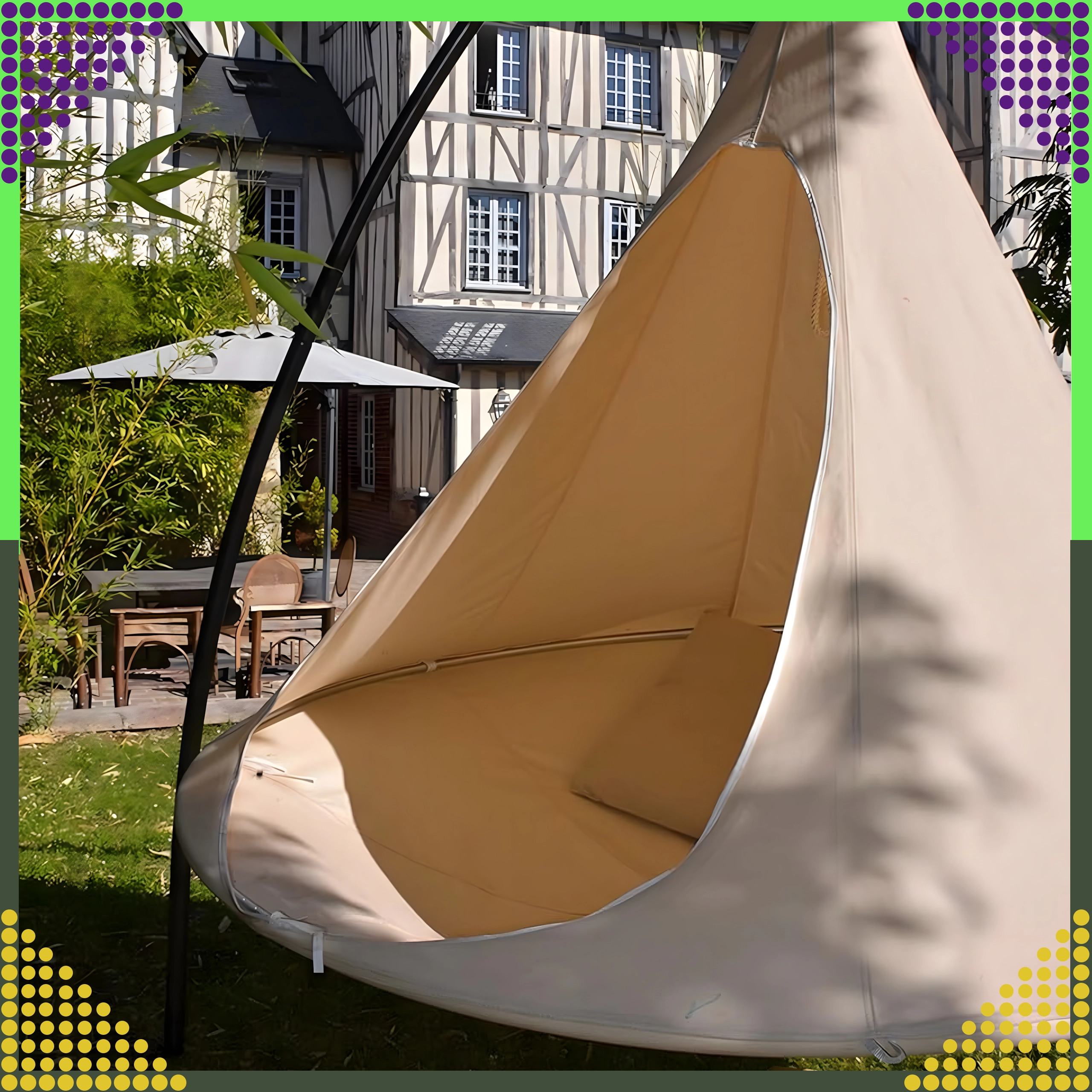 Hamacul suspendat în formă de cocon creează un refugiu plăcut, sigur și liniștit pentru citit, relaxare sau un pui de somn. Datorită materialului respirabil și prinderii rezistente într-un singur punct, este potrivit pentru camera copiilor, living sau în grădină, sub copac. Nuanța bej se potrivește ușor cu orice stil.