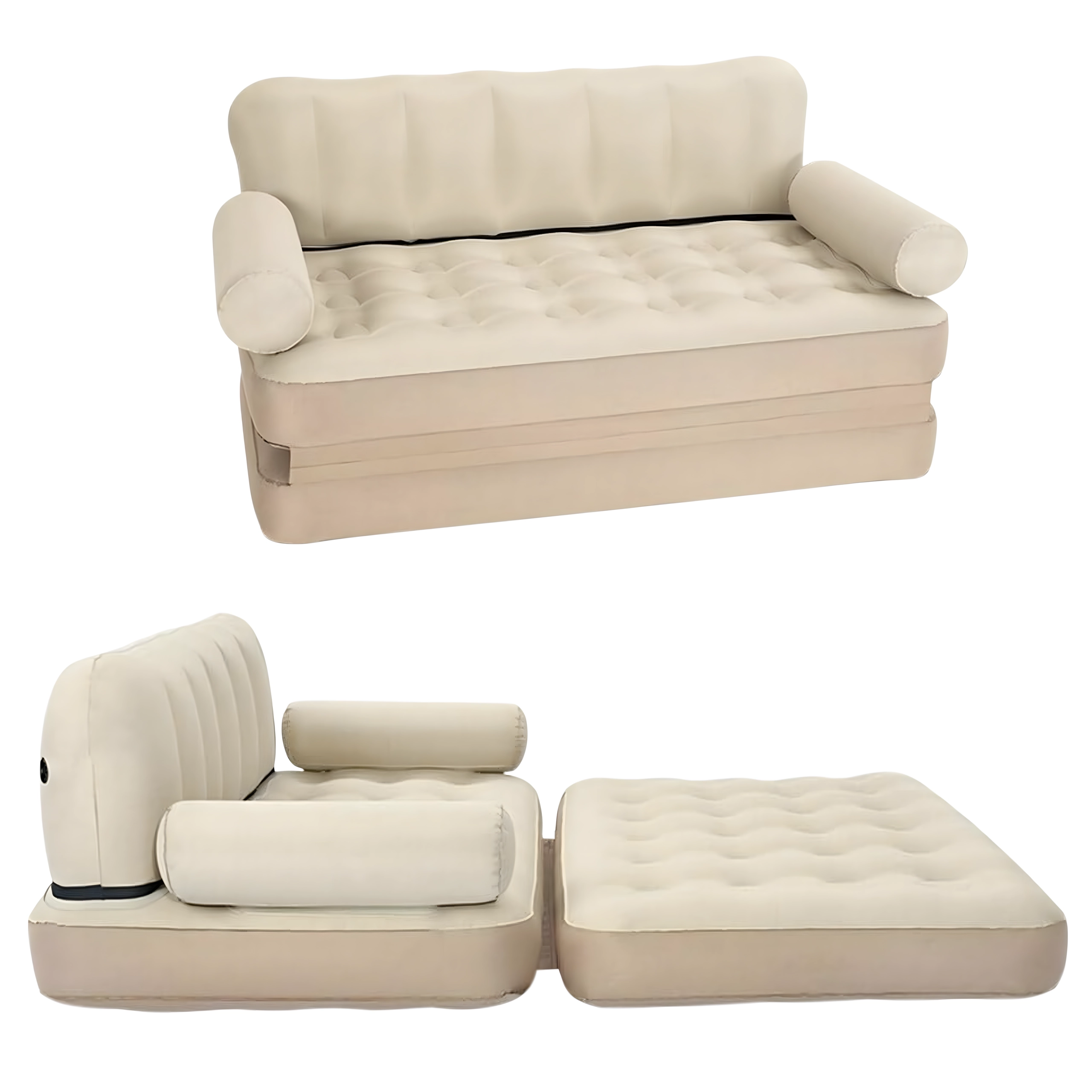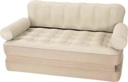 Canapeaua gonflabilă universală 5‑în‑1 este o piesă de mobilier practică pentru confort zilnic acasă și în călătorii. Servește ca canapea, șezlong, saltea și pat pentru două persoane. Datorită PVC‑ului rezistent este ușoară, ușor de transportat și, în eleganta culoare bej, se potrivește în orice interior și în grădină.