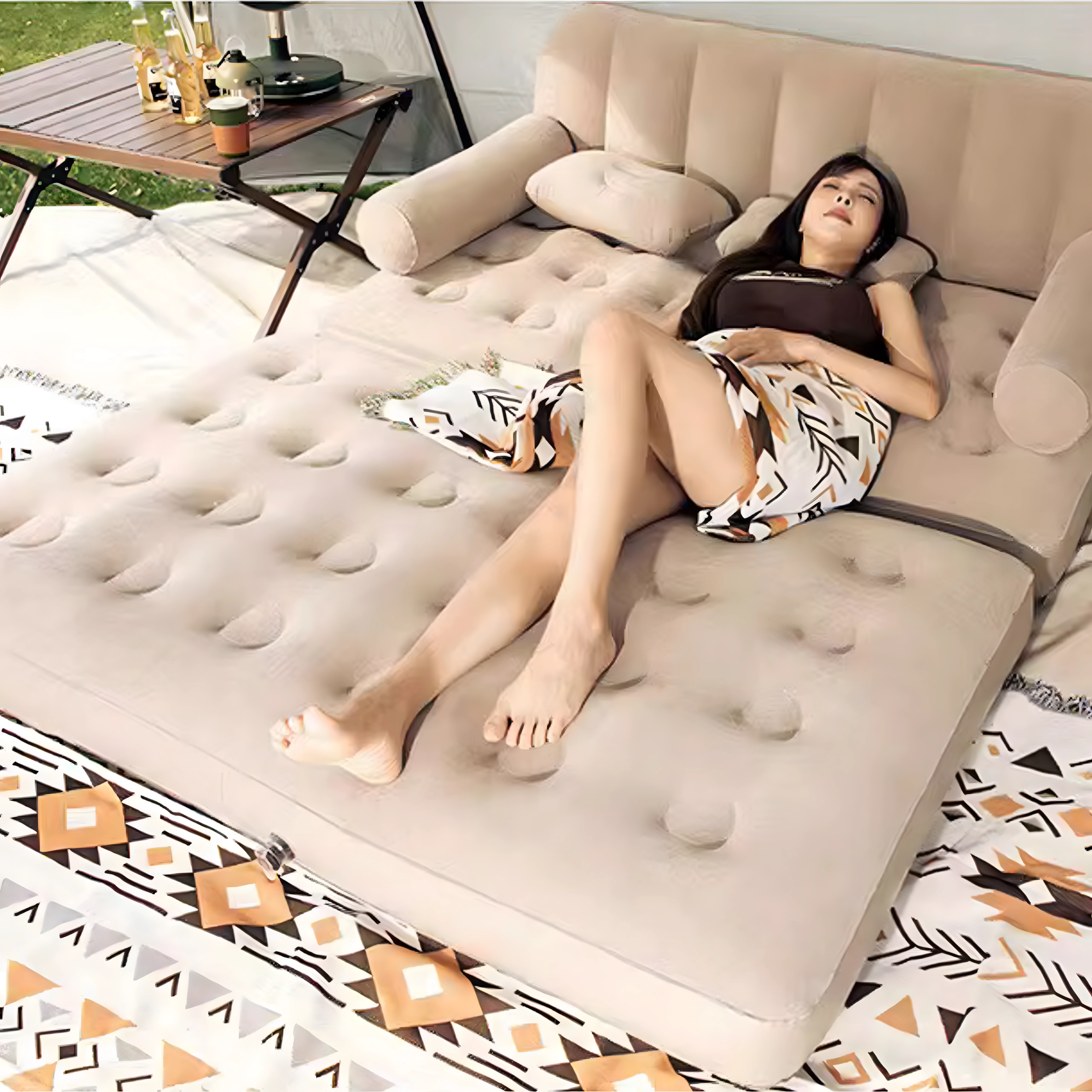 Ședere confortabilă în living, relaxare pe terasă și somn comod în camping. Designul bej se potrivește oricărui decor.