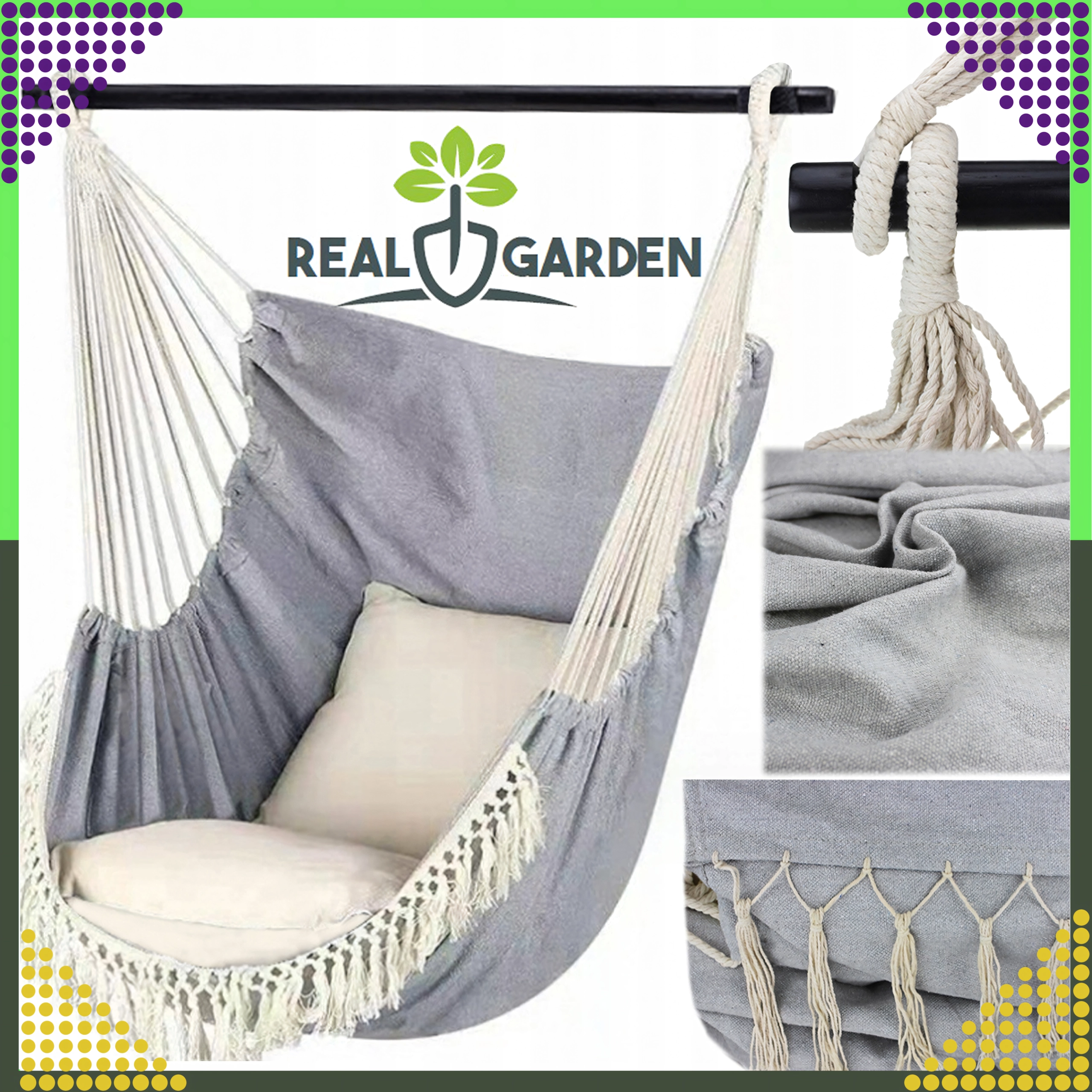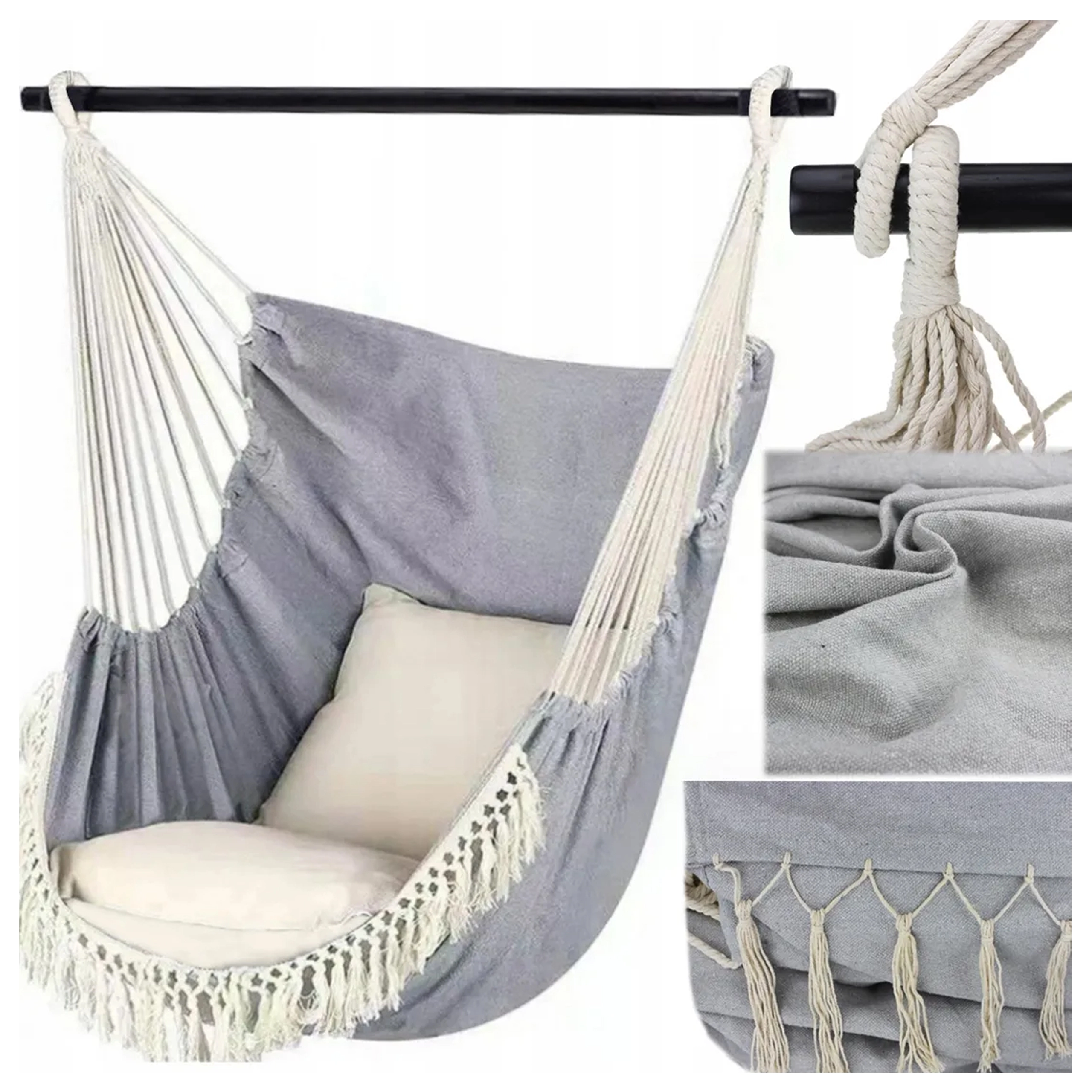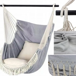 Acest scaun tip hamac oferă confort excepțional datorită textilei respirabile și prinderii stabile pe bară transversală, care previne strângerea în cocon. Ideal pentru living, dormitor, dar și pentru balcon, terasă sau grădină, fiind excelent și pentru călătorii.
