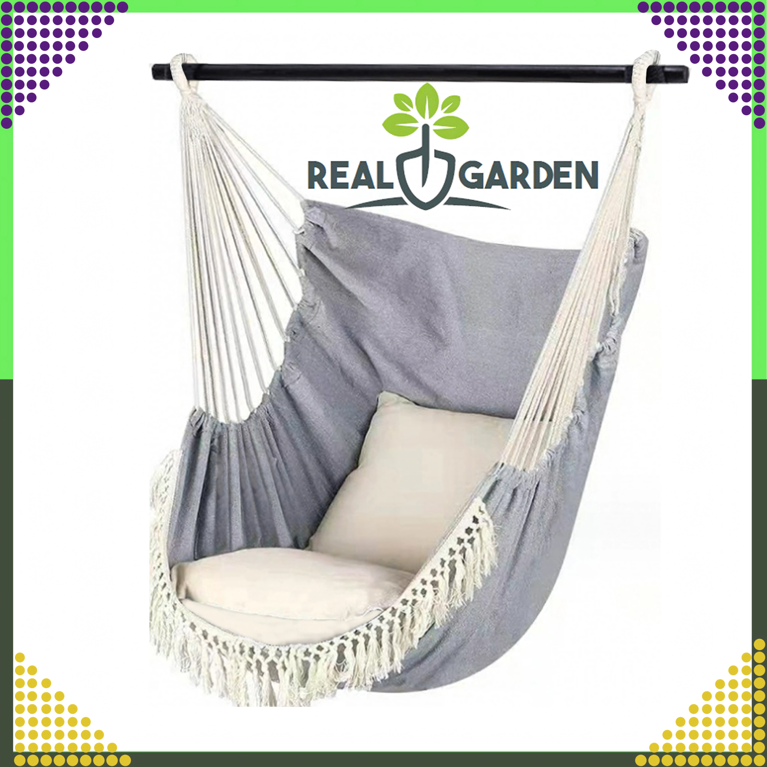 Eleganta culoare gri închis se potrivește ușor atât cu amenajări moderne, cât și boho. Legănarea în hamac ajută la eliberarea tensiunii, calmează mintea și oferă o odihnă plăcută pentru întreaga familie.