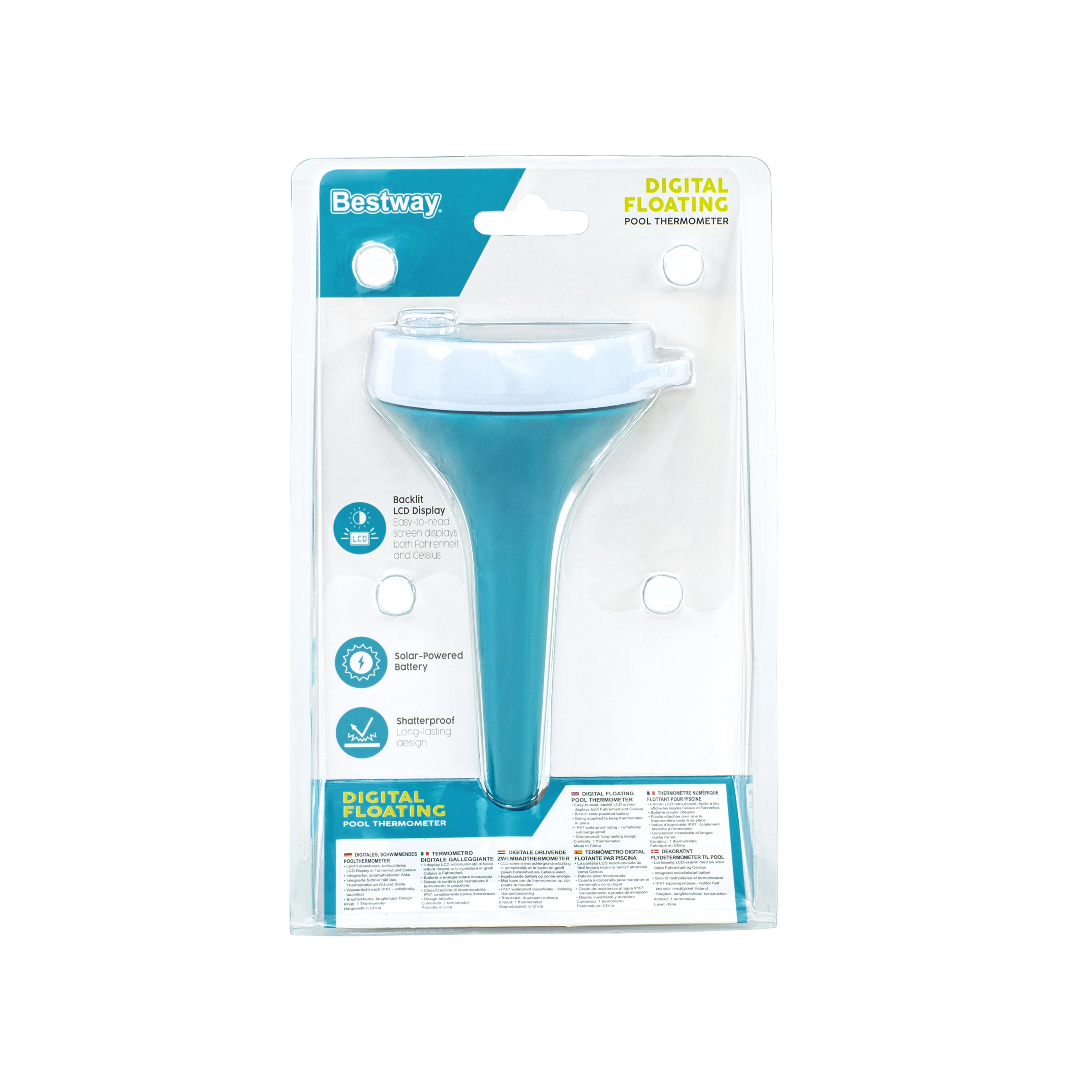 Termometrul digital solar BESTWAY este o soluție practică pentru piscine, căzi cu hidromasaj și iazuri de grădină. Designul plutitor cu ecran clar afișează instant temperatura actuală a apei, iar panoul solar asigură o funcționare ecologică, fără întreținere, fără a fi nevoie de schimbarea bateriilor.