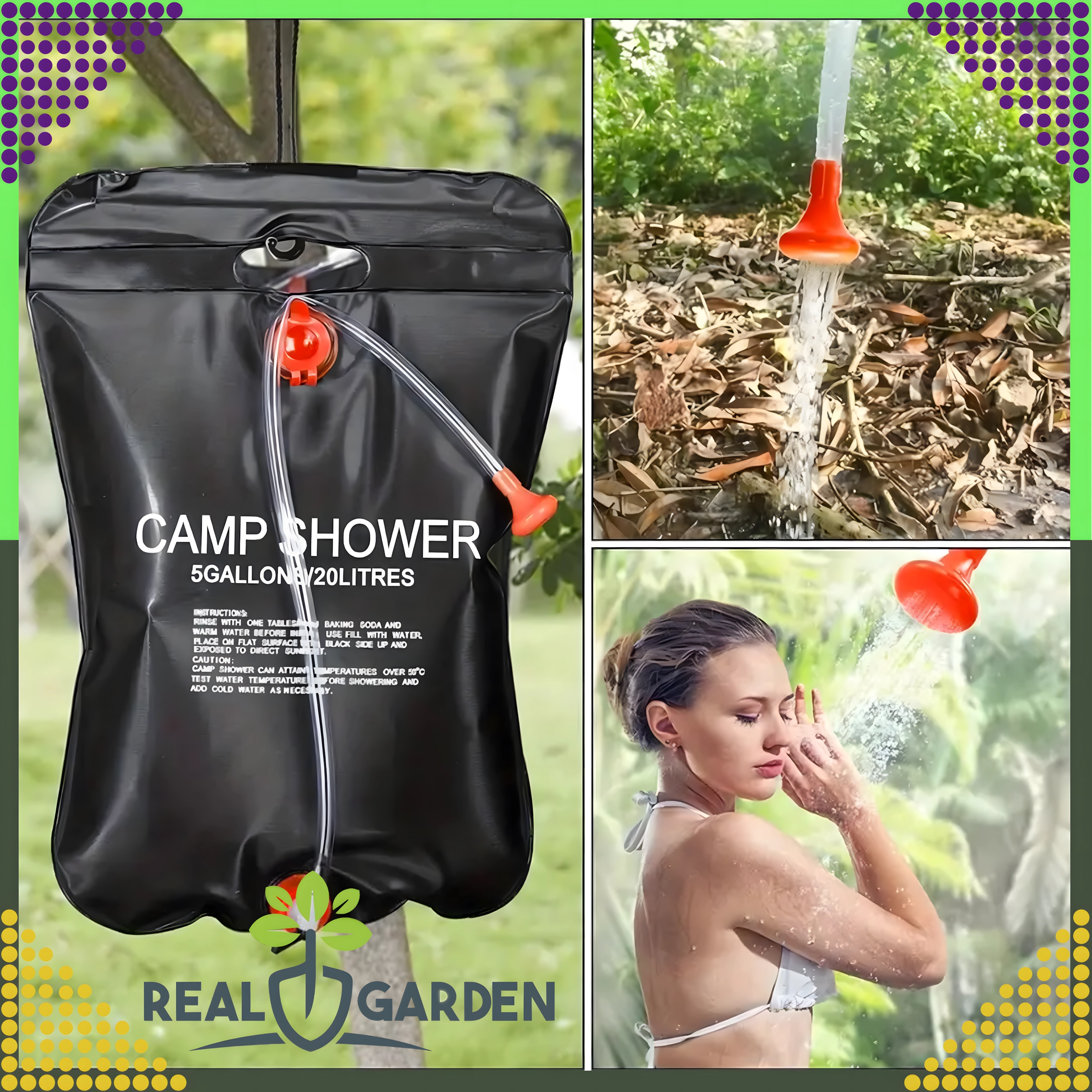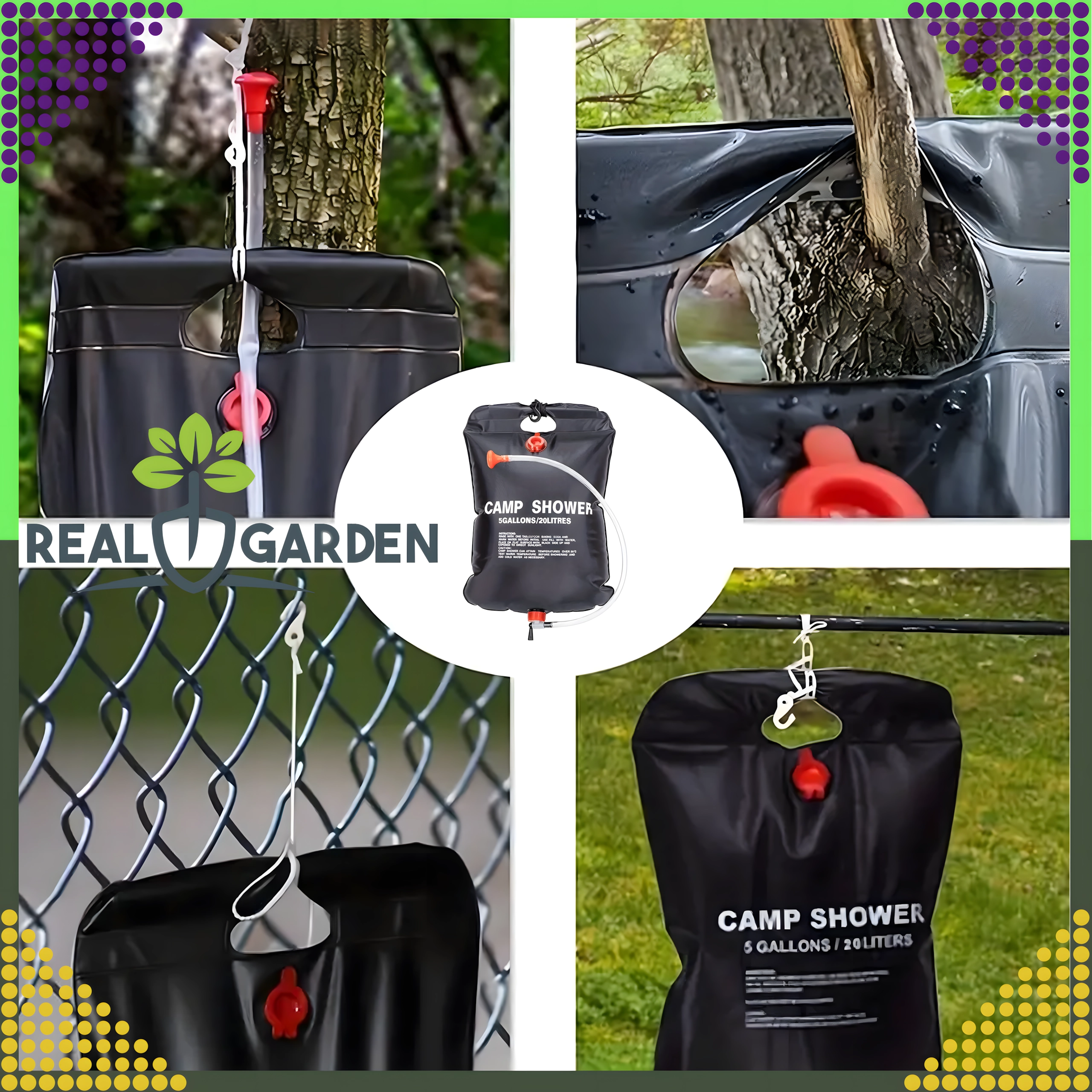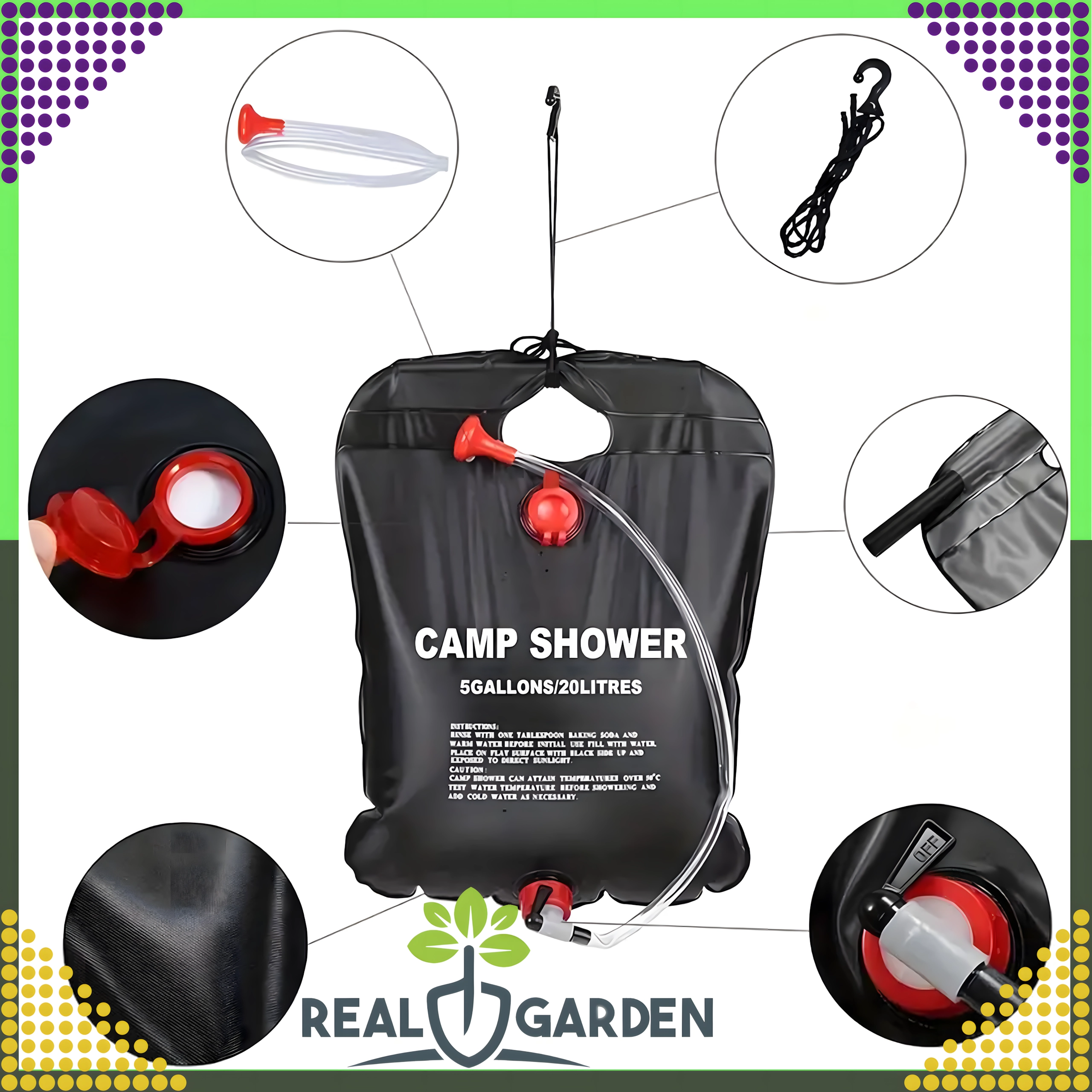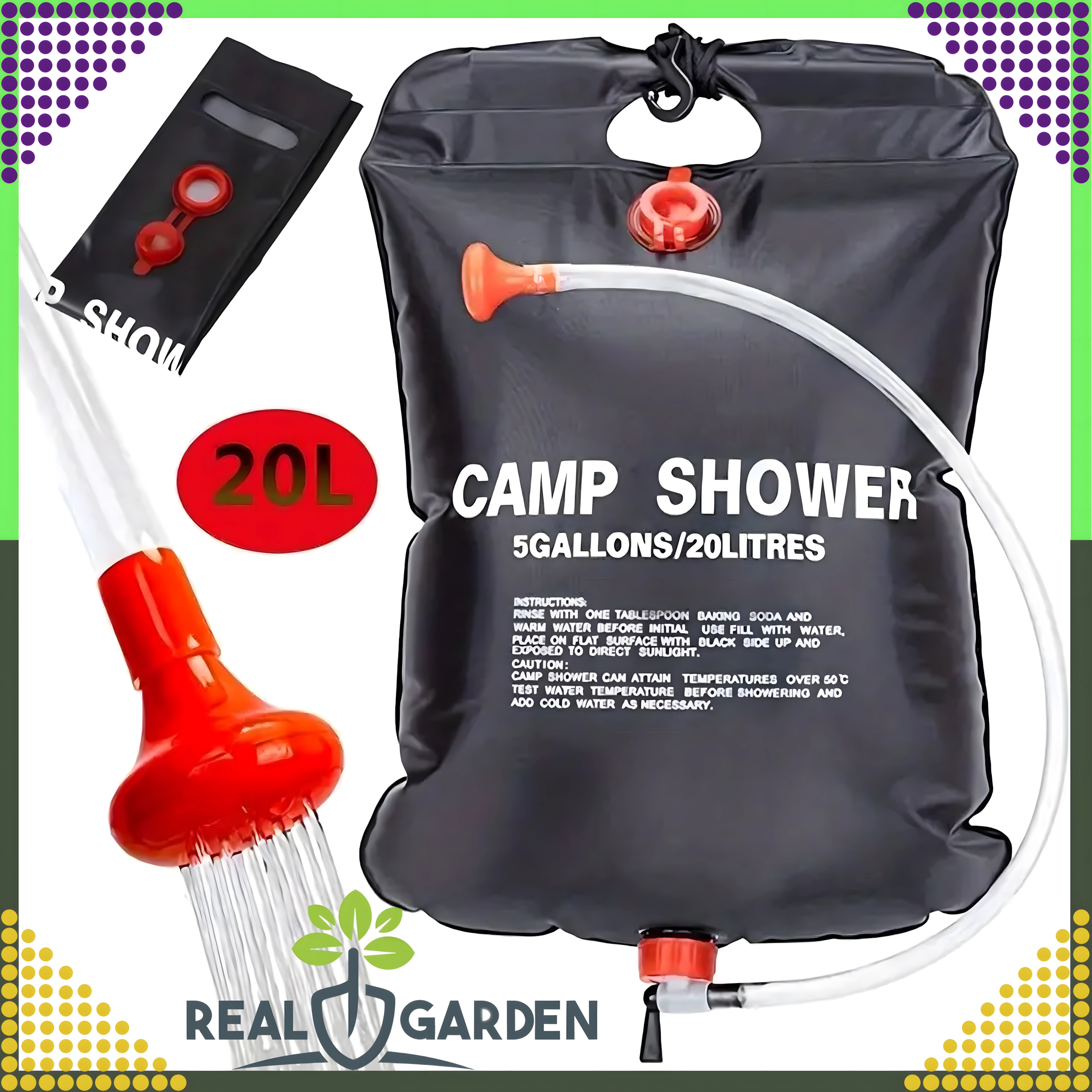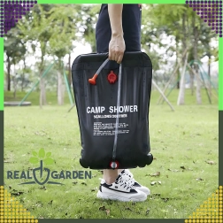 Dușul este echipat cu o agățătoare solidă pentru suspendare și o pară de duș practică, asigurând utilizare comodă în camping, lângă apă sau în grădină.