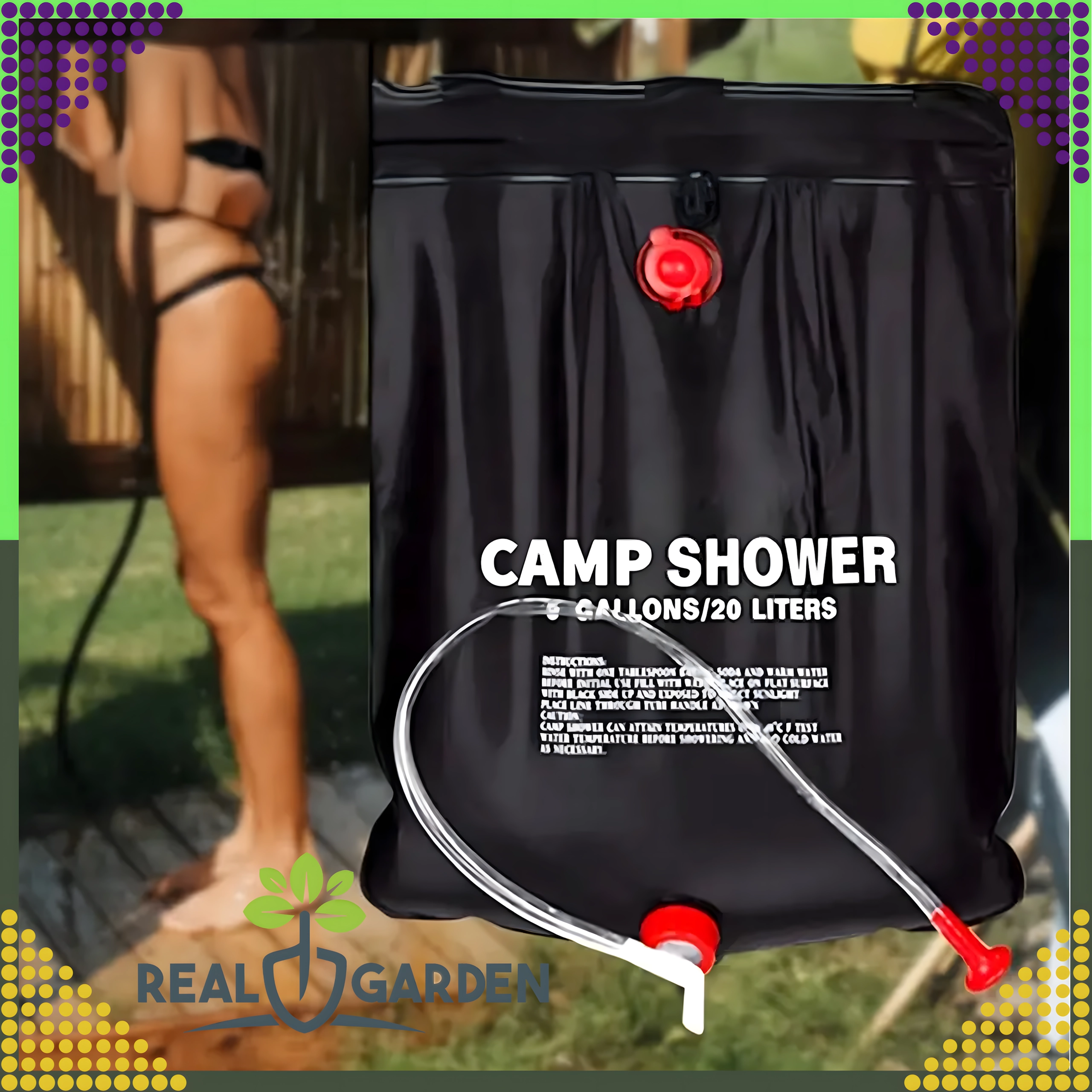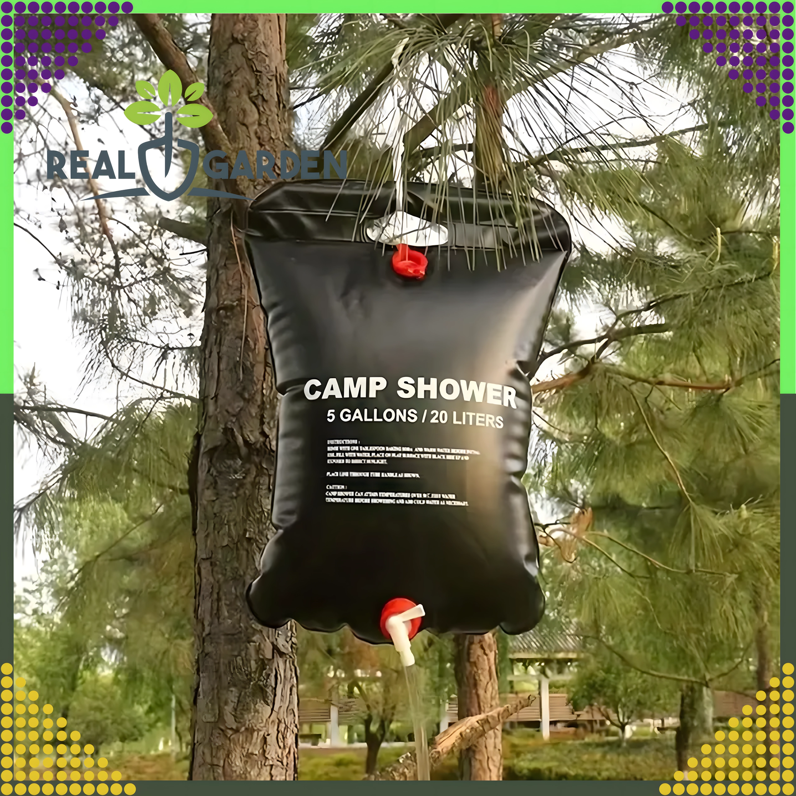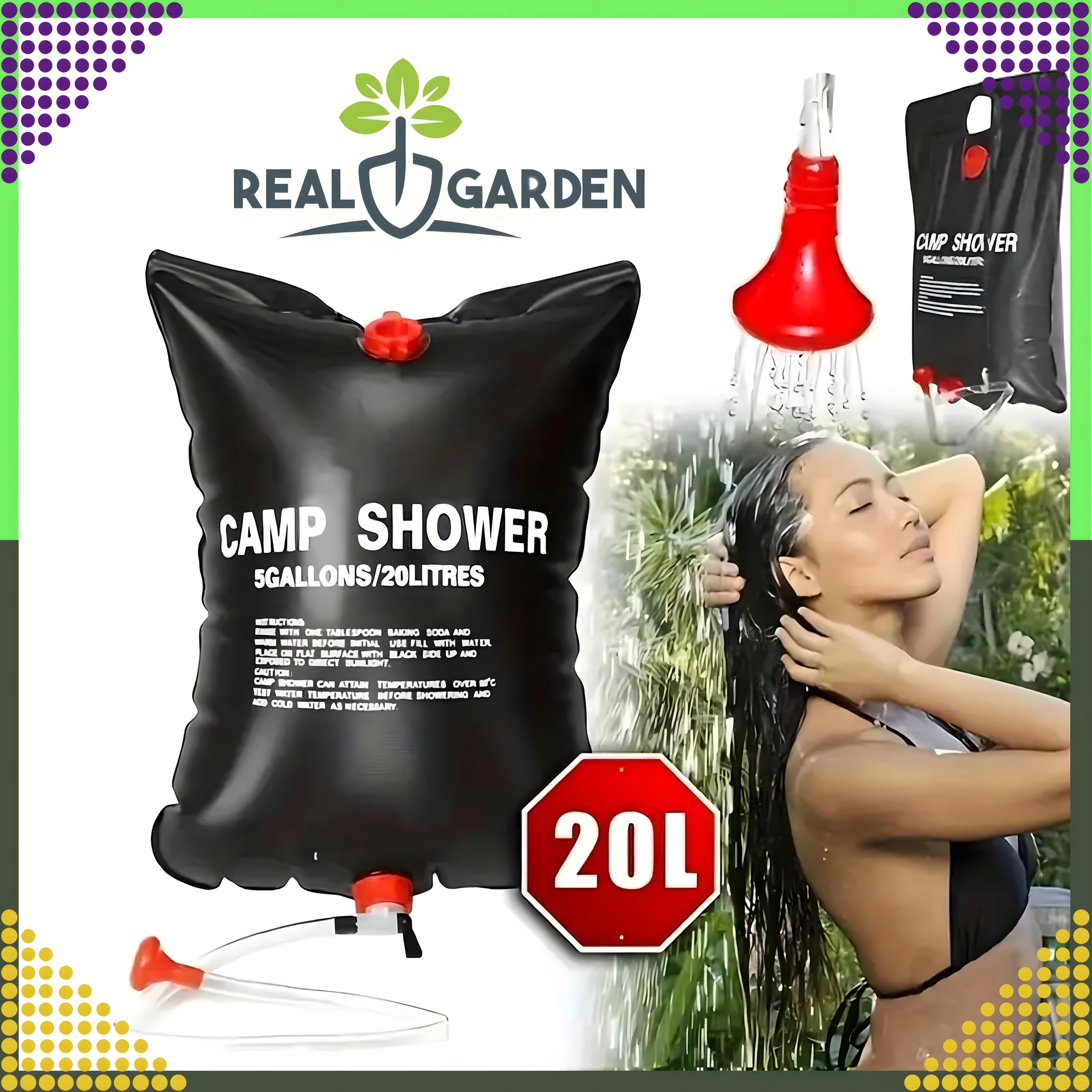 Dușul este echipat cu o agățătoare solidă pentru suspendare și o pară de duș practică, asigurând utilizare comodă în camping, lângă apă sau în grădină.