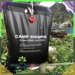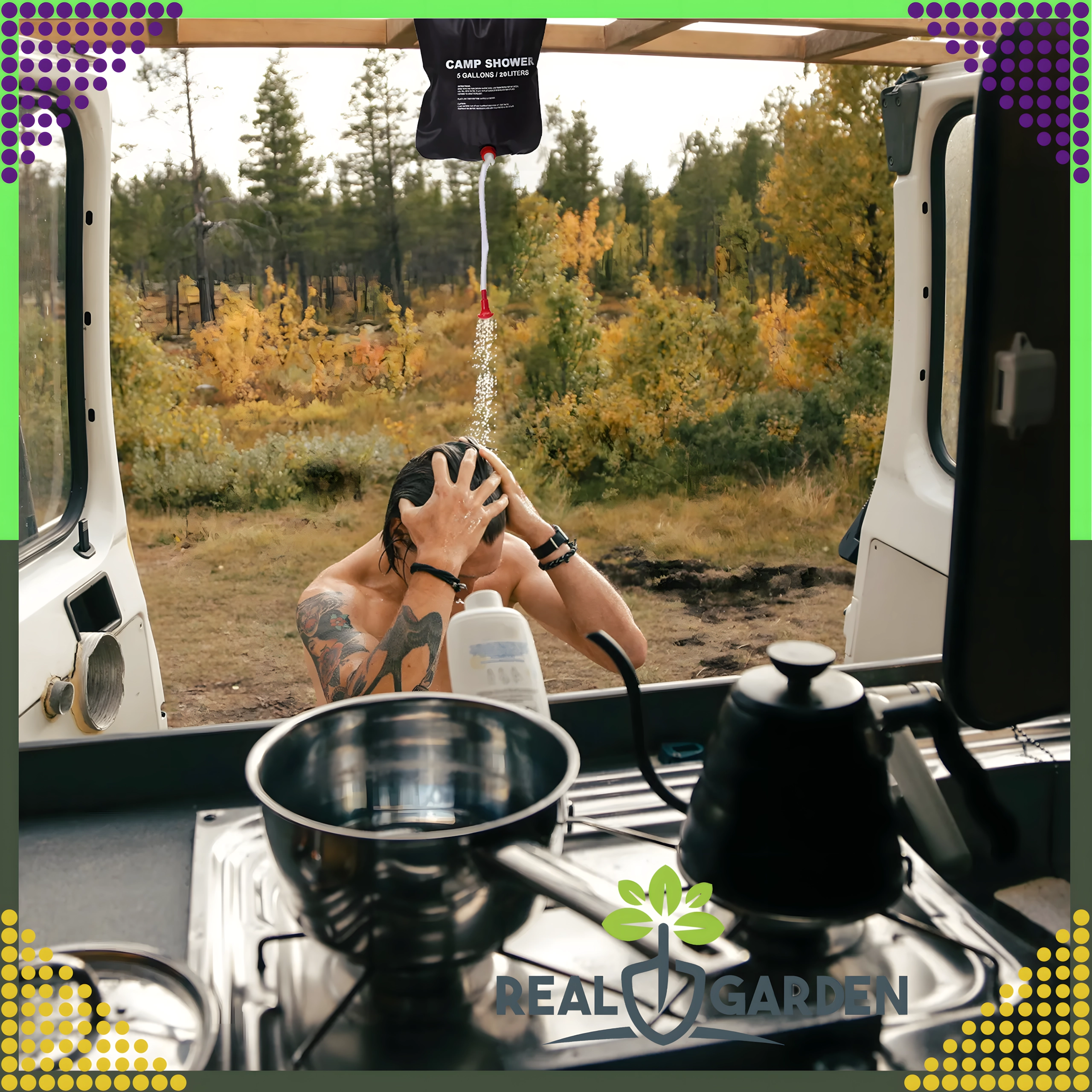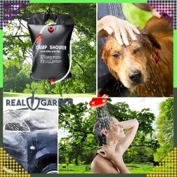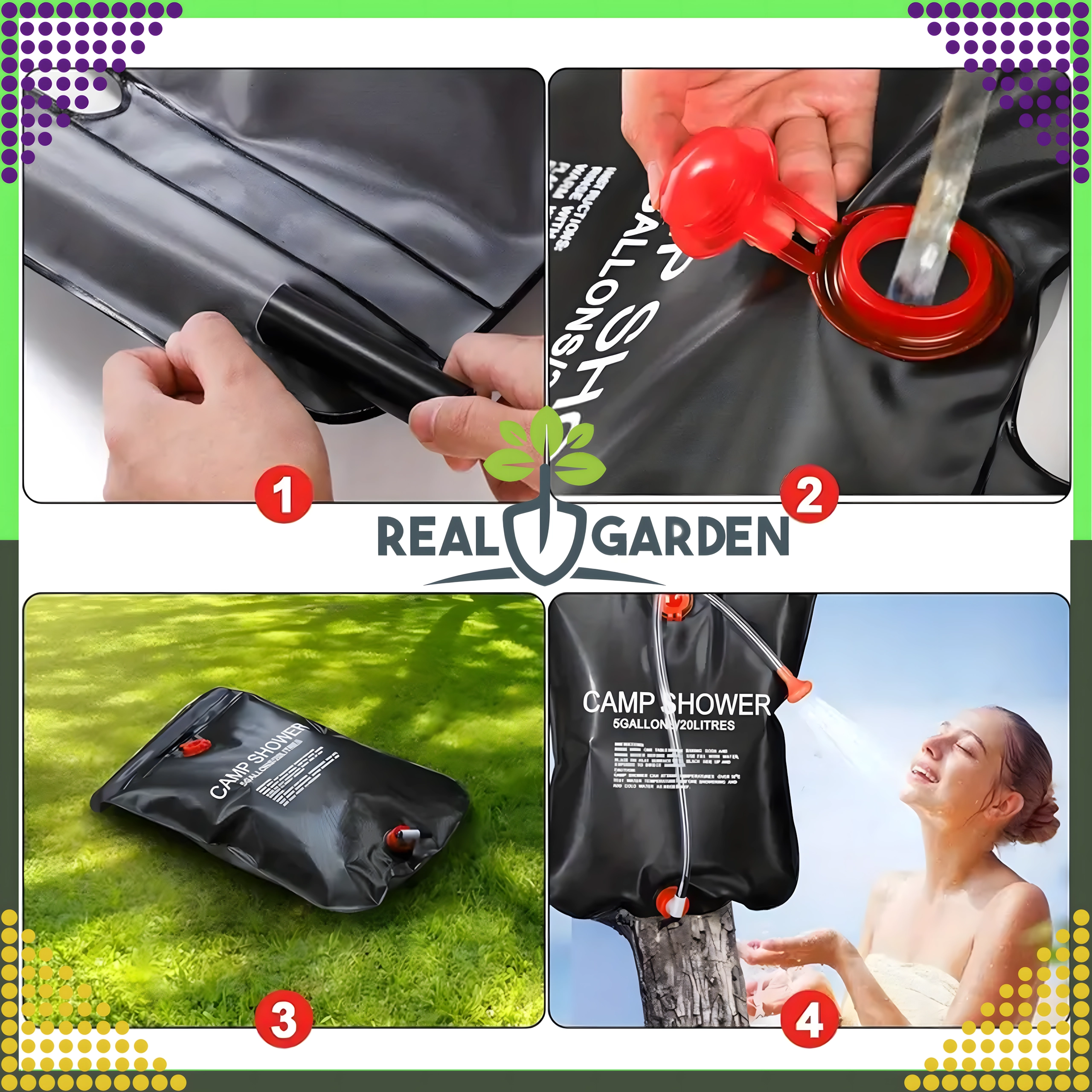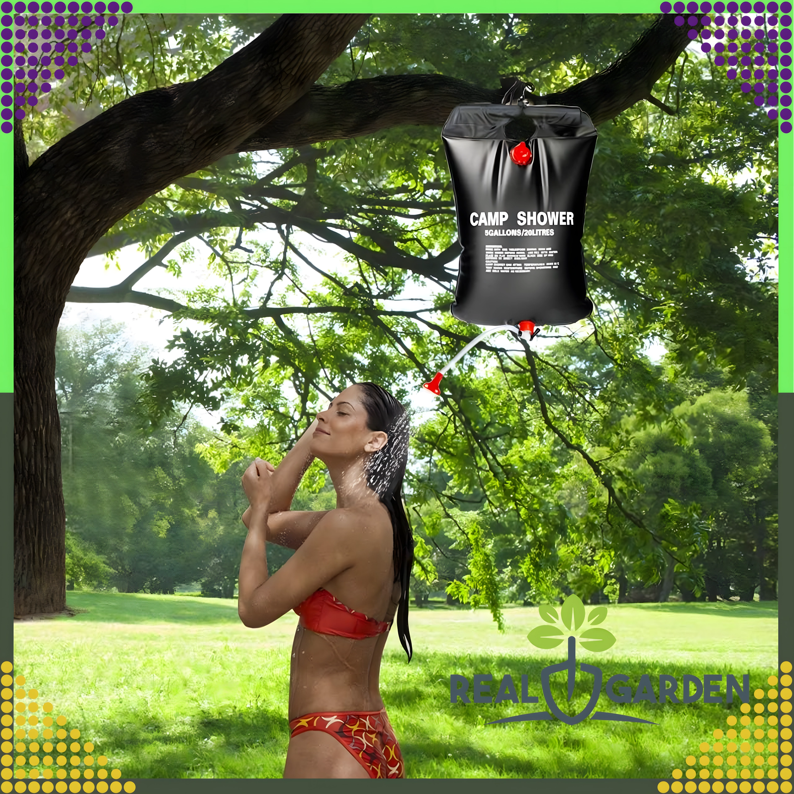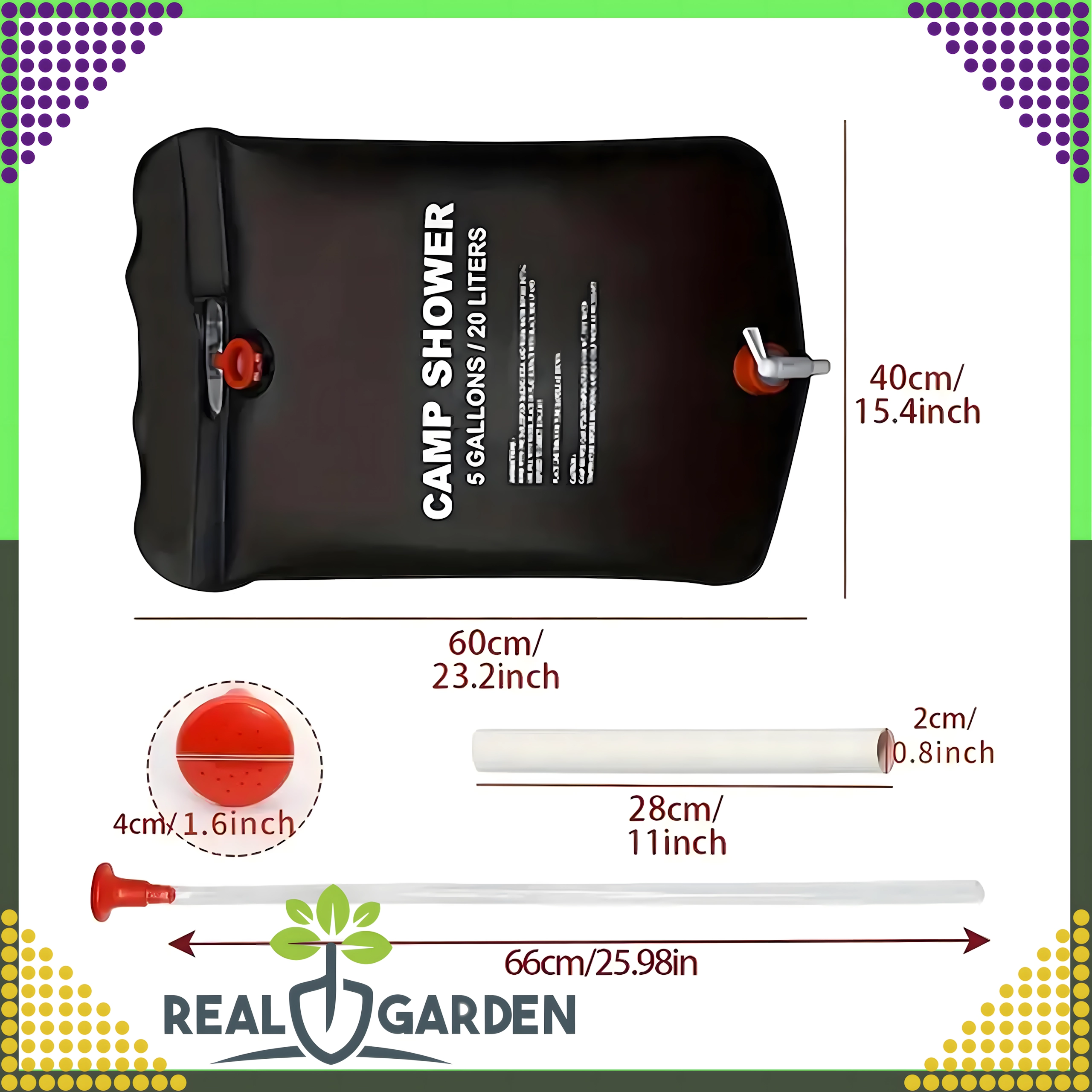 Dușul este echipat cu o agățătoare solidă pentru suspendare și o pară de duș practică, asigurând utilizare comodă în camping, lângă apă sau în grădină.