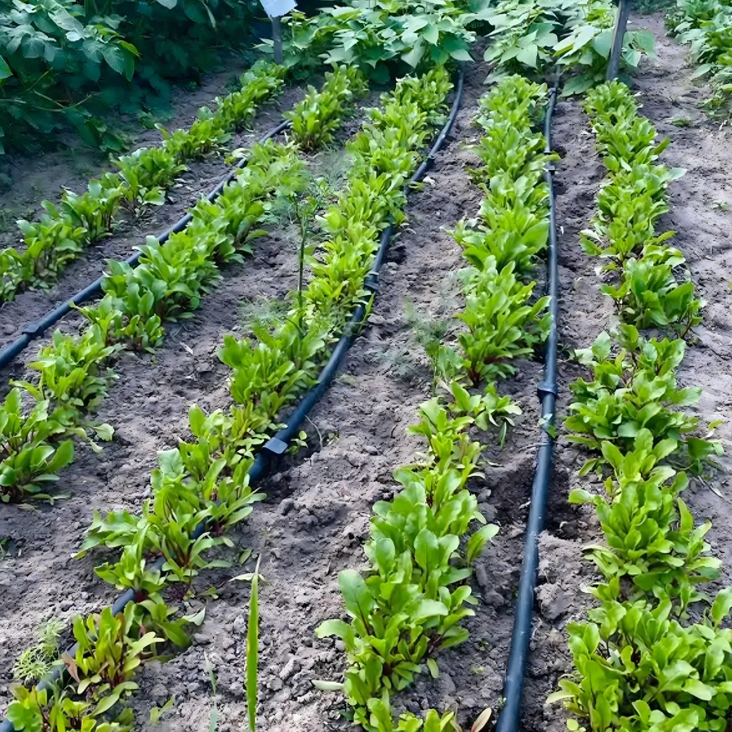 Furtunul de picurare distribuie apa exact acolo unde plantele au nevoie. Minimizează evaporarea și susține creșterea sănătoasă a culturilor și a plantelor ornamentale.