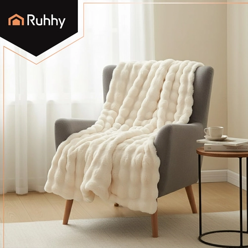 Elegantul pled alb RUHHY este ideal ca pătură pentru canapea, învelitoare pentru serile la televizor sau ca cuvertură decorativă pentru pat ori fotoliu. Este moale, ușor și călduros, astfel încât te încălzește la citit și odihnă. Culoarea albă atemporală se potrivește ușor atât în interioare moderne, cât și clasice.