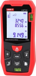 UNI‑T LM70A este un telemetru laser fiabil pentru construcții, design interior și supervizare tehnică. Oferă măsurarea precisă a distanțelor până la 70 de metri, operare intuitivă și un corp robust, comod în mână. Datorită ecranului LCD iluminat de 2", valorile se citesc ușor chiar și în condiții de lumină slabă.