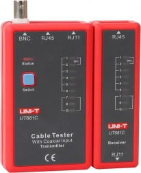 UT681C gestionează cabluri ethernet, telefonice și coaxiale. Cu adaptorul RJ45–BNC puteți verifica ușor și liniile coaxiale – de la continuitate până la maparea conductorilor.