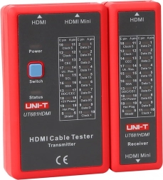 UNI‑T UT681HDMI este un instrument fiabil pentru verificarea completă a cablajului HDMI, inclusiv Mini HDMI. Sistemul LED intuitiv testează până la 19 pini, inclusiv masa de semnal și ecranajul, astfel încât puteți identifica rapid toate defecțiunile uzuale de transmisie a imaginii și sunetului. Selectarea automată a modului (rapid, complet, scanare) simplifică munca atât pentru începători, cât și pentru profesioniști.