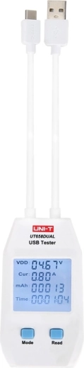Testerul UNI-T UT658DUAL oferă o imagine completă a parametrilor de încărcare pentru dispozitive moderne. Pe un singur ecran urmăriți U/I/P, capacitatea (mAh), energia (Wh) și rezistența circuitului (Ω). Datorită domeniului larg de 4–24 V DC și curentului de până la 3 A (USB-A) / 5 A (USB-C), testați cu ușurință încărcătoare, cabluri și baterii externe.