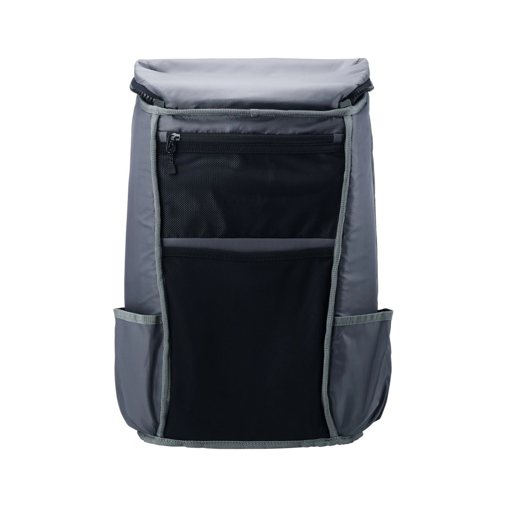 Buzunarul frontal din plasă cu fermoar, compartimentul frontal încăpător și buzunarele laterale oferă acces rapid la accesorii, cabluri și sticla de apă.