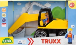 Buldozerul din plastic LENA TRUXX le oferă copiilor jocuri de construcție realiste. Datorită construcției solide și plasticului rezistent, face față cu ușurință jocului atât în interior, cât și afară. Manevrarea este adaptată mâinilor mici – copiii ridică și coboară intuitiv brațul mobil și cupa, rotesc suprastructura și explorează posibilitățile de joc.