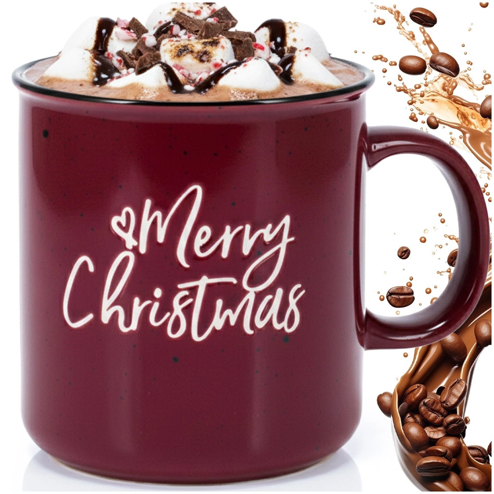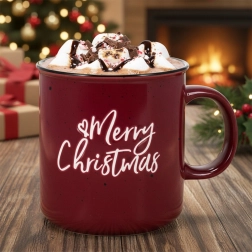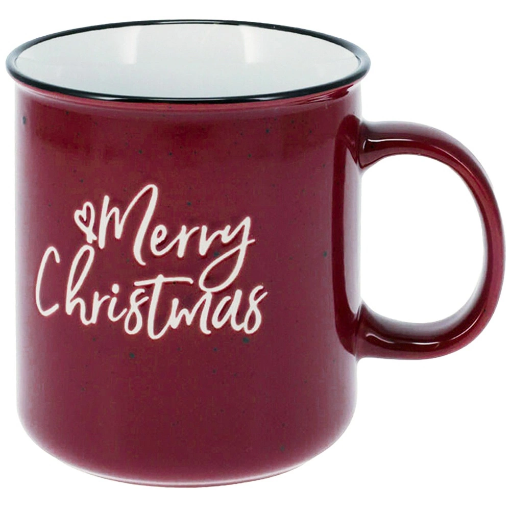 Inscripția în relief, glazura bordo și finisajul lucios aduc atmosfera sărbătorilor la orice masă. O idee grozavă de cadou.