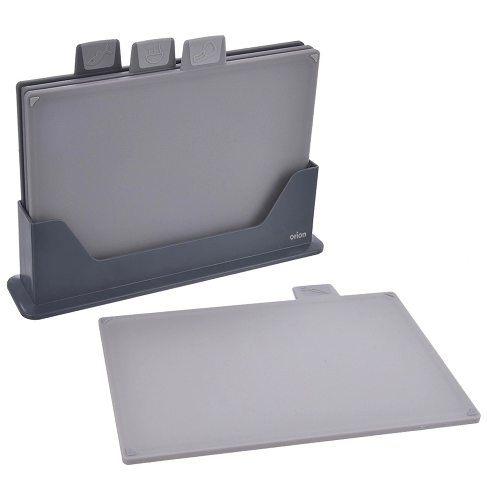 Patru tocătoare cu pictograme pentru pește, carne, legume și mâncăruri calde ajută la prevenirea contaminării încrucișate și mențin pregătirea mâncării clar organizată.