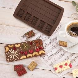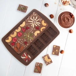 Cu această formă universală din silicon de calitate vei prepara tablete spectaculoase și mini praline cu nuci, fructe uscate sau biscuiți. Materialul flexibil este ferm, durabil și nu lipește, astfel că scoți piesele finite fără deteriorare. Forma are dimensiuni totale de 18,5 × 13,5 × 1,5 cm.