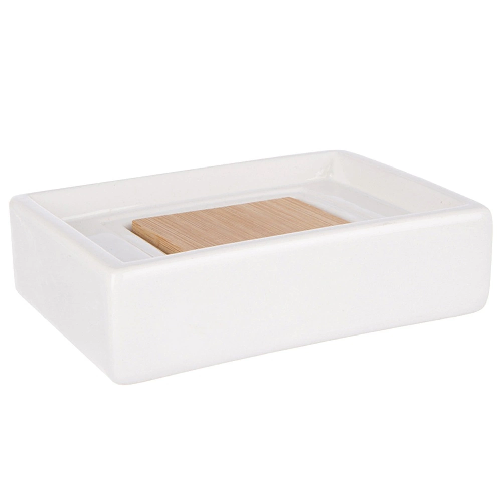 Această săpunieră practică combină ceramica lucioasă (dolomit) cu bambusul natural pentru o scurgere eficientă a apei și un aspect curat al băii sau bucătăriei. Datorită inserției din lemn ridicate, săpunul nu stă în apă, se usucă mai bine și rezistă mai mult.
