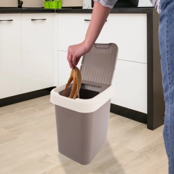 Coșul de gunoi practic și stilat, cu volum de 12 l, este ideal pentru sortarea zilnică a deșeurilor mărunte acasă și la birou. Datorită dimensiunilor compacte de 27 × 22 × 31 cm, îl poți amplasa pe podea, pe blatul din bucătărie sau în dulap. Suprafața netedă din plastic, în combinație maro-crem, se întreține ușor și se potrivește cu majoritatea interioarelor.
