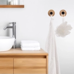 Setul de 2 cârlige autoadezive este o soluție inteligentă pentru depozitarea ordonată a prosoapelor, halatelor, cârpelor, genților și accesoriilor. Bambusul natural combinat cu metalul negru creează un accent atemporal și minimalist, potrivit interioarelor moderne și scandinave. Montajul fără unelte economisește timp, pereții și faianța.