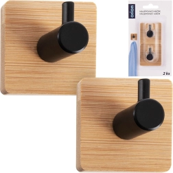 Set practic de două cârlige de perete care combină lemn de bambus și metal negru mat pentru o soluție elegantă și durabilă de organizare. Montaj autoadeziv fără găurire pentru fixare rapidă în baie, bucătărie sau hol. Dimensiunea compactă 4,5 × 4,5 cm este ideală pentru prosoape, haine sau genți.