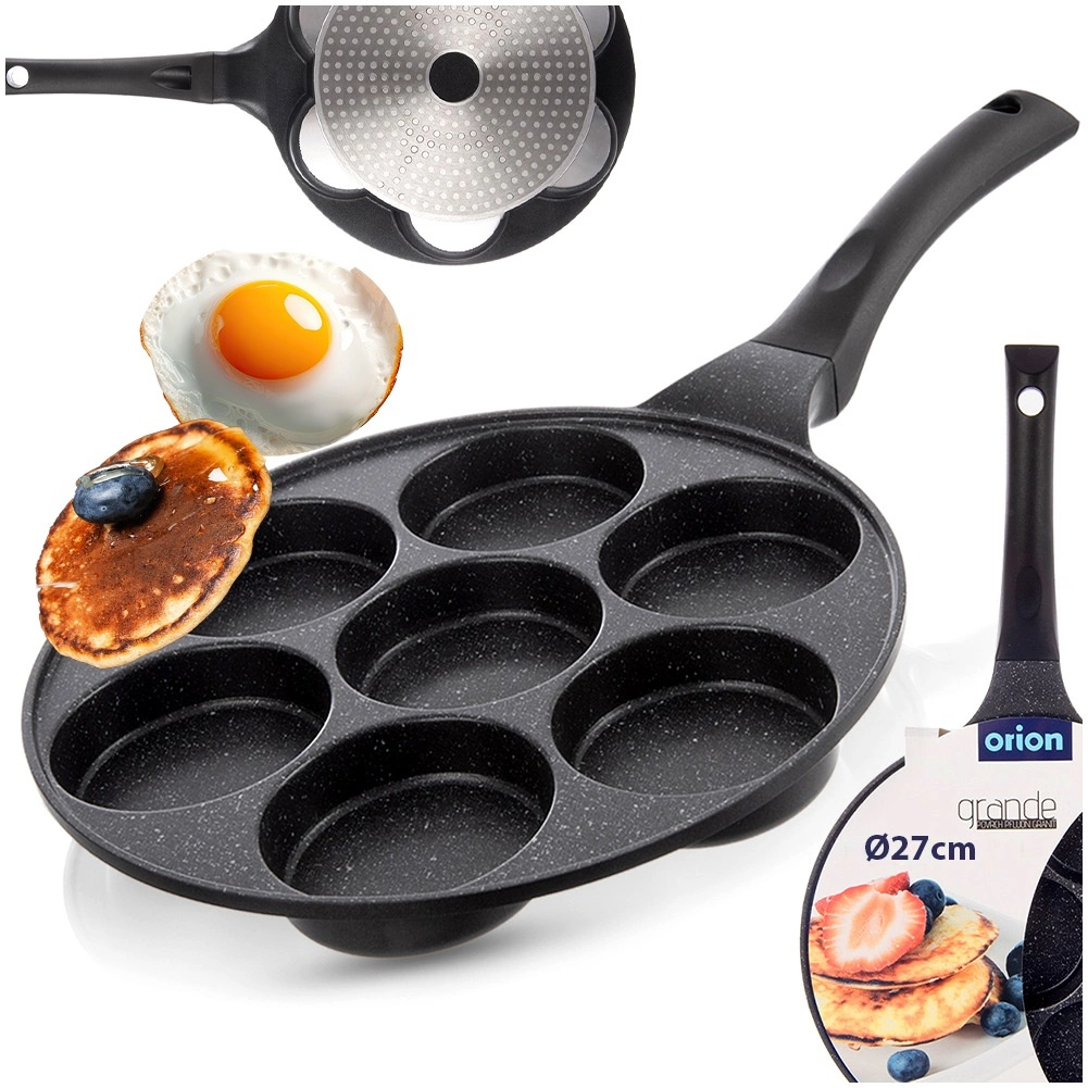 Această tigaie stilată cu suprafață antiaderentă cu aspect de granit este ideală pentru pregătirea rapidă a micului dejun sau a gustărilor. Datorită celor șapte forme rotunde obțineți mereu porții egale, cu formă perfectă – de la ouă ochiuri la clătite groase și mini clătite. Corpul din aluminiu cu strat PFLUON GRANIT permite prăjire mai sănătoasă, cu o cantitate minimă de ulei, și ușurează curățarea.