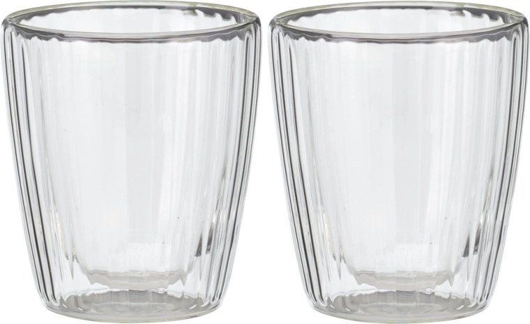Setul conține 2 pahare cu dimensiunile 8,5 × 8,5 × 9,5 cm și volumul de 230 ml. Fabricat în conformitate cu standardele europene de calitate.