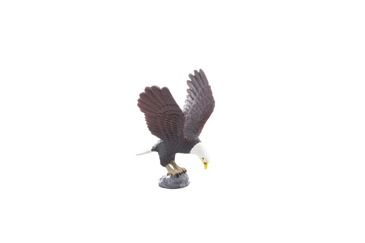 Figurina este fixată pe un suport „stâncos” solid, fiind stabilă atât la joacă, cât și la expunere. Culorile naturale, cu capul alb contrastant, ciocul și ghearele galbene, susțin învățarea despre răpitori și dezvoltarea imaginației.