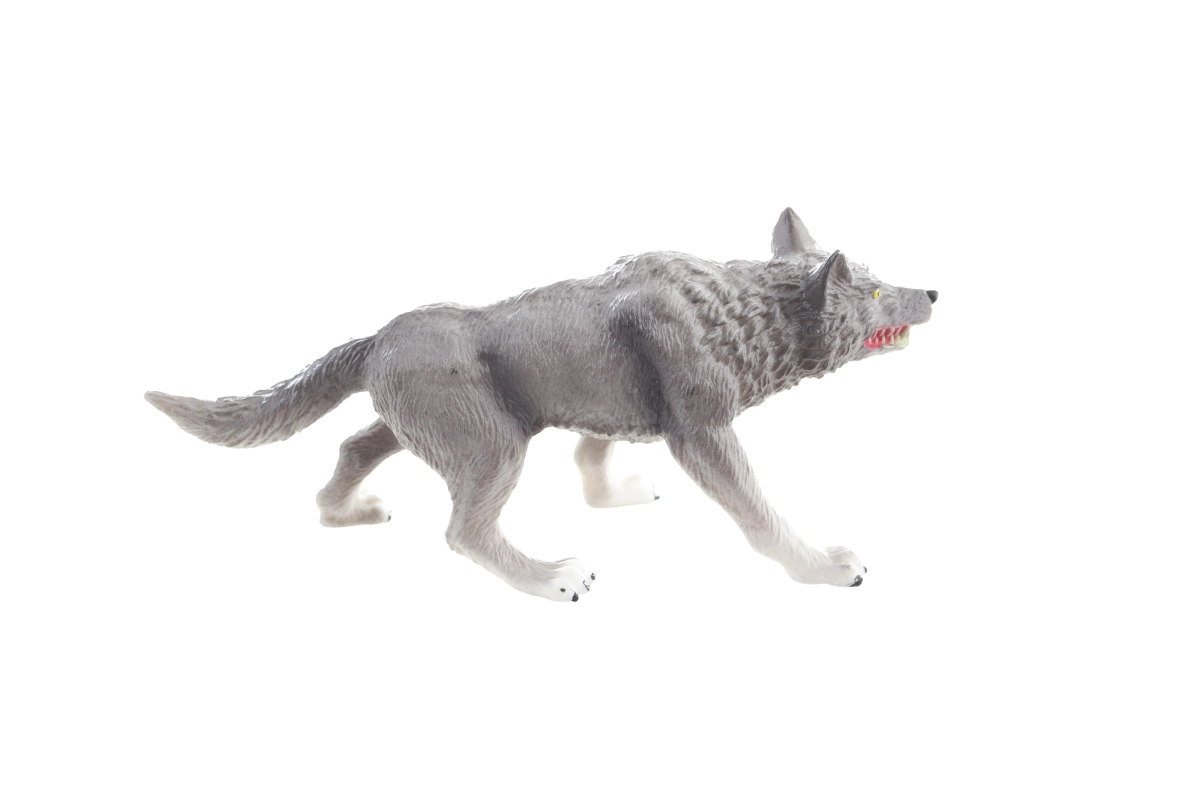 Descoperă farmecul naturii sălbatice cu figurina realistă de lup, cu dimensiunile 13 × 5 × 4 cm. Detaliile modelate cu precizie ale blănii, dinții ascuțiți și ochii galbeni oferă jucăriei un aspect autentic, care stimulează imaginația și sprijină învățarea despre animale.