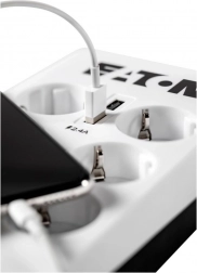 EATON Protection Box 6 USB este un prelungitor cu protecție la supratensiune de top, conceput pentru protejarea computerelor, TV-urilor, sistemelor Hi‑Fi, consolelor de jocuri, echipamentelor de rețea și a altor electronice sensibile. Datorită construcției avansate conforme cu IEC 61643-11, filtrează eficient vârfurile de tensiune, interferențele și efectele indirecte ale trăsnetului. Aveți control asupra stării protecției datorită indicatorului Protection OK.