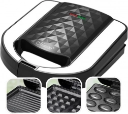 În pachet găsești placă de grătar, placă pentru vafe și placă pentru biscuiți în formă de alună. Suprafața antiaderentă ușurează curățarea, dimensiunile compacte de 22 × 22 × 8,5 cm economisesc spațiu, iar lungimea cablului de 65 cm facilitează amplasarea pe blatul de lucru.
