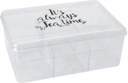 Păstrați ordinea în bucătărie cu organizatorul practic pentru ceai. Materialul ușor, dar solid și închiderea etanșă ajută la menținerea prospețimii și aromei plicurilor de ceai. Datorită celor șase compartimente separate, sortați cu ușurință diferitele tipuri de ceai fără amestecarea aromelor.
