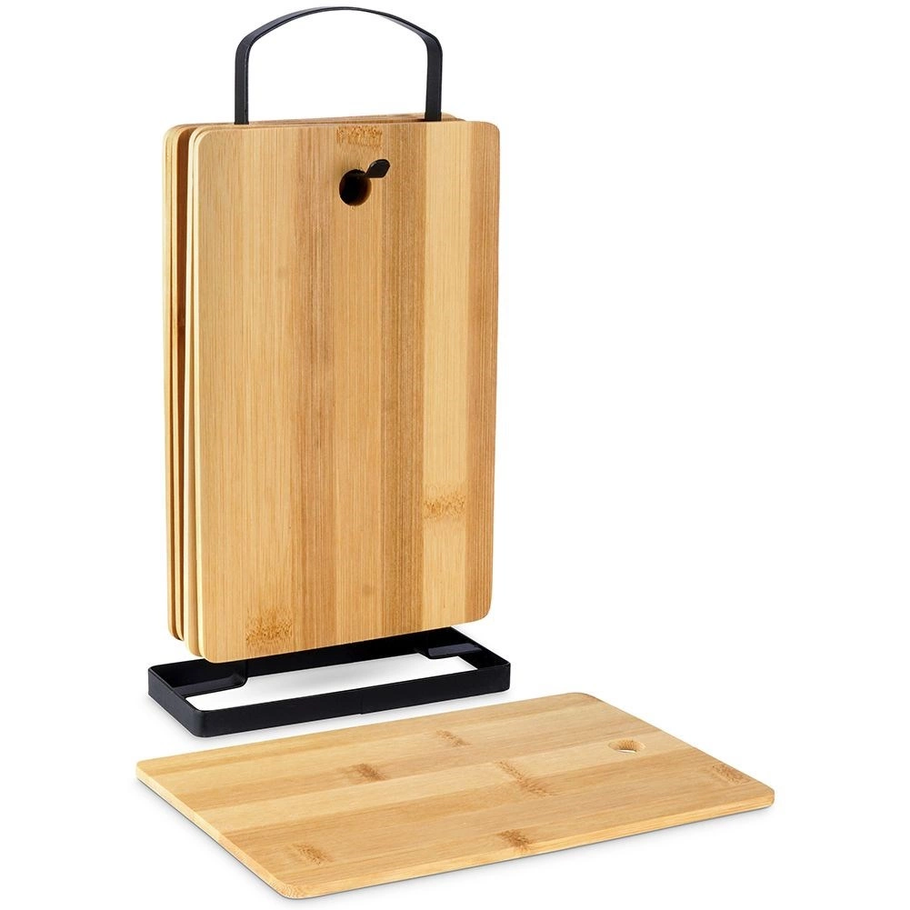 Bambusul este în mod natural rezistent la umiditate și curbări, se usucă rapid și nu preia mirosuri. Suprafața netedă este plăcută la lucru și blândă cu muchia cuțitelor. Datorită orificiului practic, tocătoarele pot fi ușor transportate sau agățate. Setul este potrivit pentru tăiere zilnică și pentru servire stilată de brânzeturi, pâine și gustări.