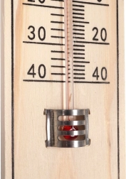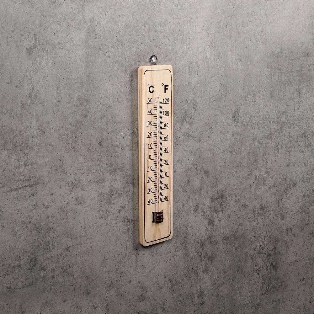 Carcasa robustă din MDF rezistent și capilara de sticlă cu lichid colorat sunt protejate de un clips metalic. Practicul ochi de agățare permite montaj facil pe perete fără unelte complicate. Domeniul de temperatură de la -40 °C la +50 °C (-40 °F la +120 °F) acoperă condițiile obișnuite pe tot parcursul anului.