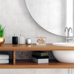 Capacul cu buton comod din bambus protejează bețișoarele de urechi de praf și umiditate și adaugă băii un accent natural și cald.