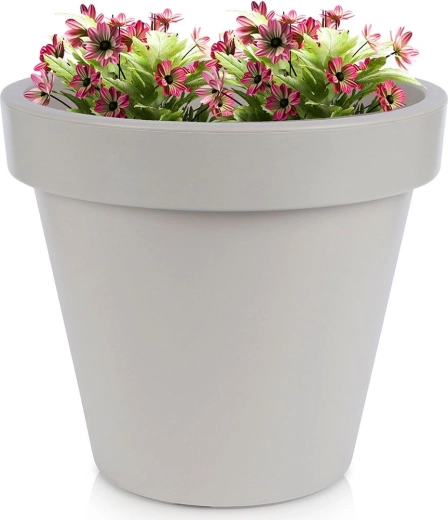 Ghiveci practic și stilat, cu formă clasică și margine lată, ideal pentru plantarea plantelor ornamentale, florilor și ierburilor aromatice. Datorită greutății reduse este ușor de manevrat, însă este realizat din plastic solid care rezistă utilizării zilnice și vremii schimbătoare.