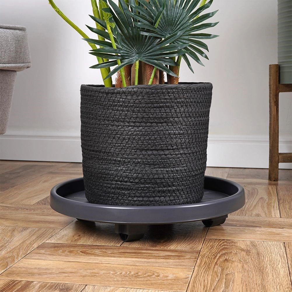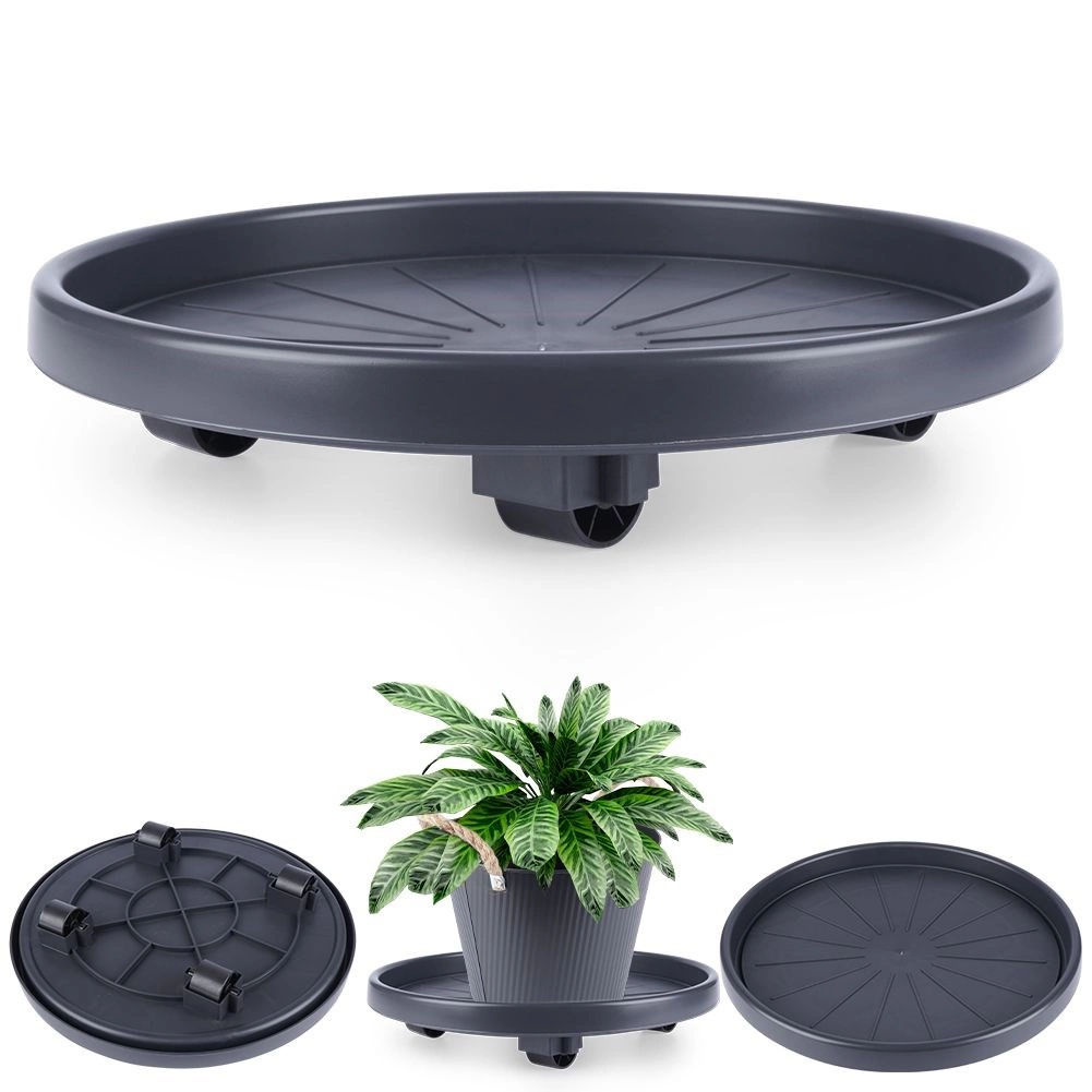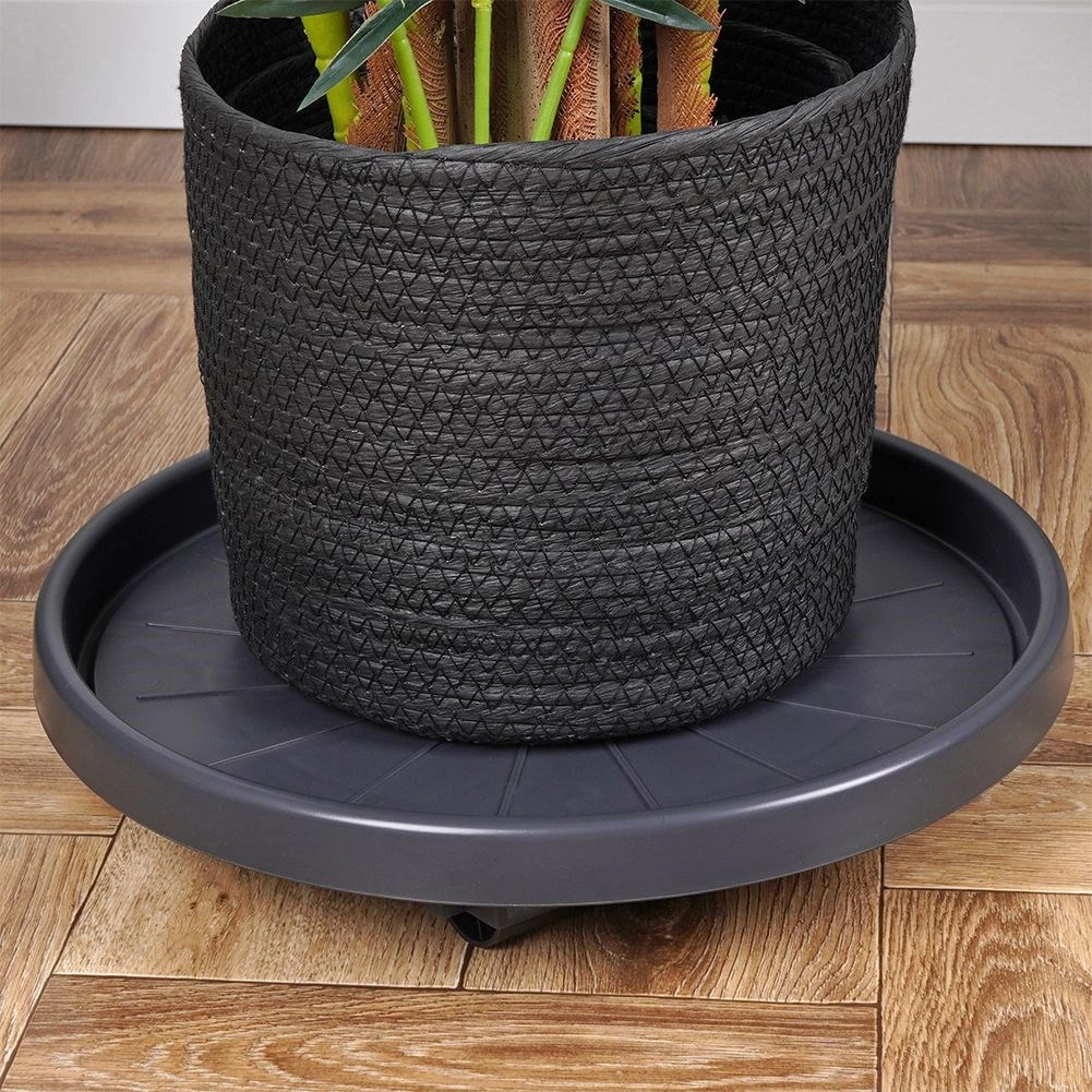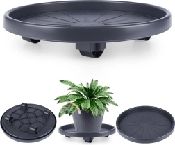 Fabricat din plastic de calitate, rezistent, în nuanță gri închis, cu rotițe negre, pentru durabilitate îndelungată. Suportul este universal pentru utilizare în interior și exterior – ușurează curățenia, schimbările de aranjament și mutările sezoniere ale plantelor, protejând totodată suprafața podelelor.