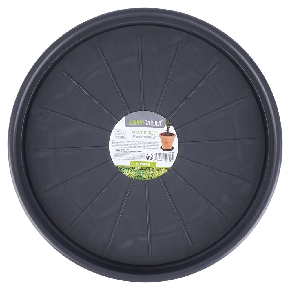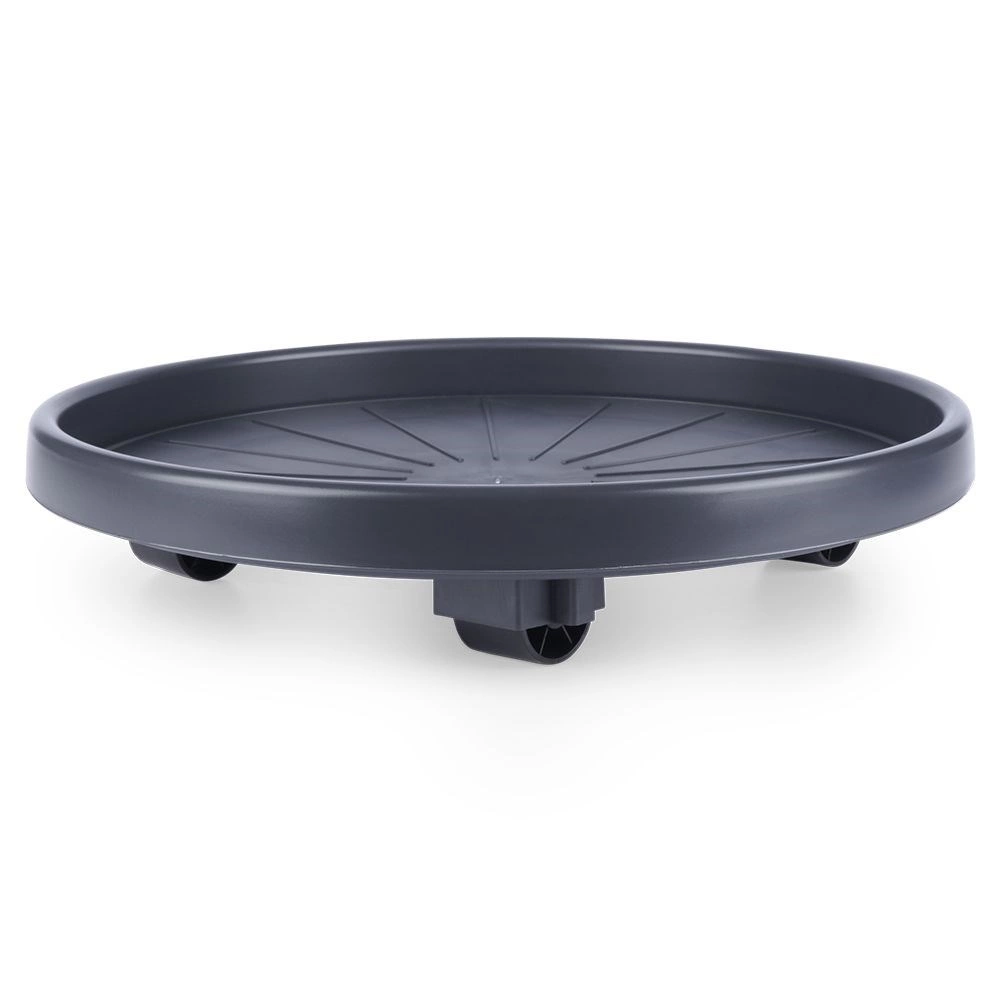 Suport mobil practic pentru ghiveci cu diametrul de 35 cm, cu o capacitate de încărcare de până la 50 kg, care ușurează mutarea ghivecelor grele fără efort. Patru rotițe asigură o deplasare lină, iar marginea înălțată menține ghiveciul în siguranță la locul lui. Construcția din plastic rezistent, în culoare gri închis, este potrivită atât pentru interior, cât și pentru exterior și protejează podeaua de zgârieturi și umezeală.