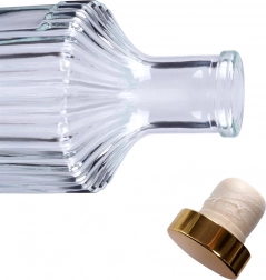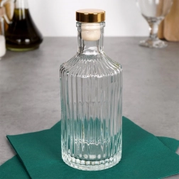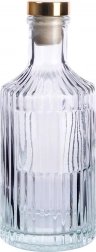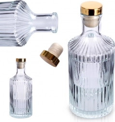 Sticlă stilată din sticlă transparentă, cu design modern striat și dop auriu decorativ, potrivită pentru servirea și depozitarea băuturilor. Dimensiunile compacte facilitează manevrarea și economisesc spațiu în frigider sau pe raft. Sticla se curăță ușor și este potrivită pentru utilizare zilnică, atât acasă, cât și în gastronomie.