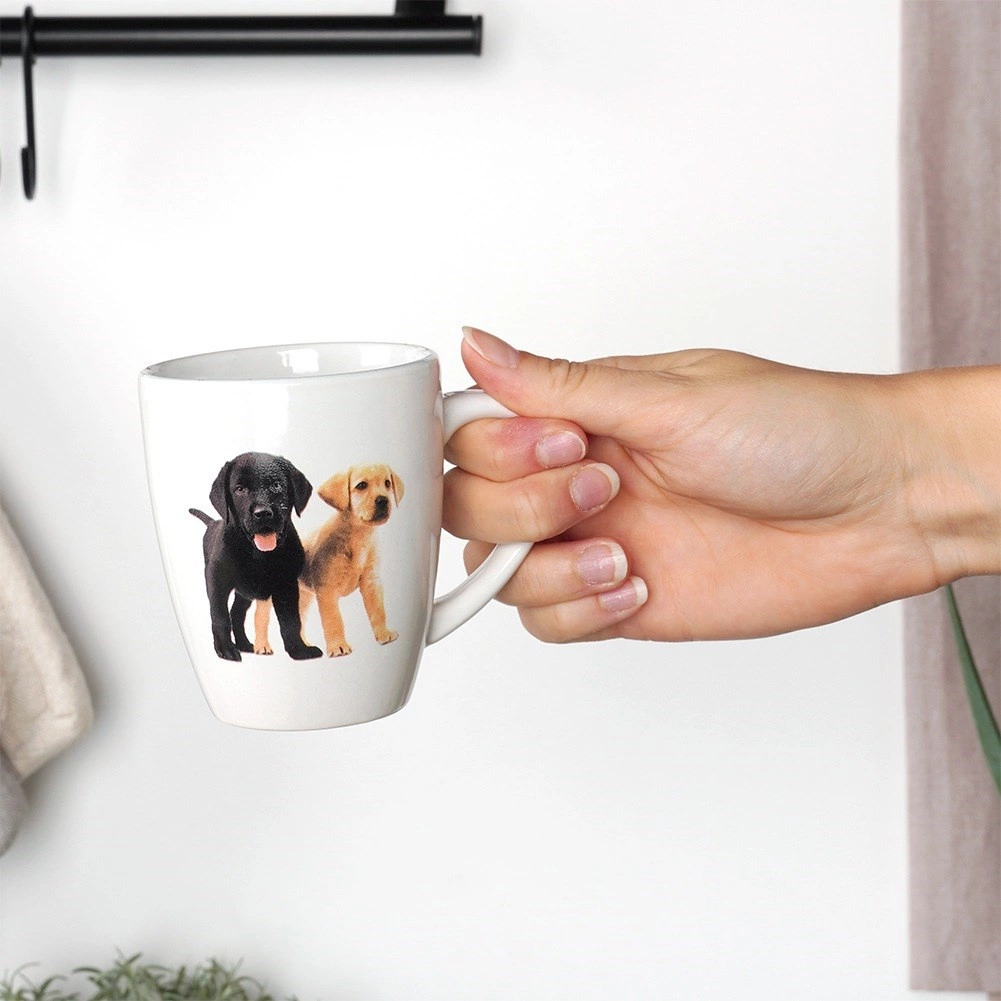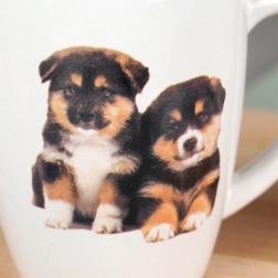 Fotografiile realiste cu căței oferă cănilor un farmec unic și transformă ceașca de cafea într-un mic ritual al bucuriei. O idee excelentă de cadou pentru iubitorii de animale.