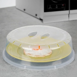 Păstrați cuptorul cu microunde perfect curat și încălziți alimentele mai sigur. Capacul pentru cuptorul cu microunde, cu diametrul de 24 cm și înălțimea de 7 cm, previne stropirea sosurilor și a grăsimilor, permițând în același timp evacuarea optimă a aburului datorită orificiilor integrate. Materialul transparent vă permite să urmăriți starea încălzirii fără a ridica capacul.