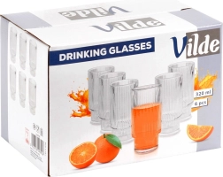 Setul de pahare Vilde aduce un design atemporal, cu striații verticale care asigură nu doar un aspect stilat, ci și o prindere comodă și sigură. Fiecare pahar are un volum de 320 ml, înălțime de cca 14 cm și diametru de 7 cm – dimensiunea ideală pentru servirea zilnică a băuturilor reci.