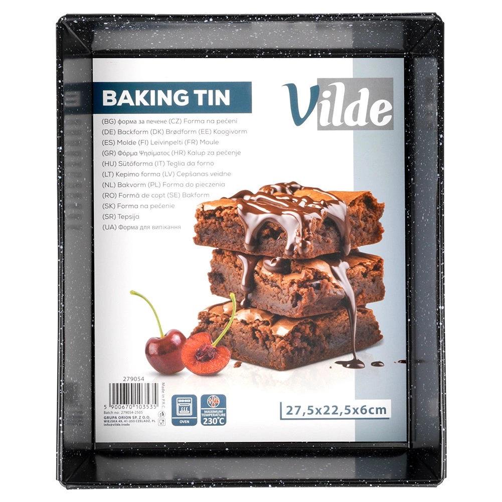 Forma dreptunghiulară practică, cu dimensiunile 27,5 × 22,5 × 6 cm, este o alegere excelentă pentru coacerea de zi cu zi și pentru meniurile de sărbătoare. Oțelul carbon conduce foarte bine căldura, garantând coacere uniformă și rezultate fiabile atât la preparatele dulci, cât și la cele sărate.