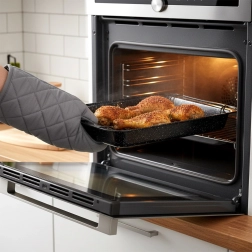 Datorită distribuției uniforme a căldurii, friptura va fi suculentă, iar crusta crocantă. Tava este universală: potrivită pentru coacerea cărnii, legumelor, preparatelor gratinate, plăcintelor și a pizzei de casă cu blat mai înalt. După coacere se curăță ușor – este potrivită pentru mașina de spălat vase.