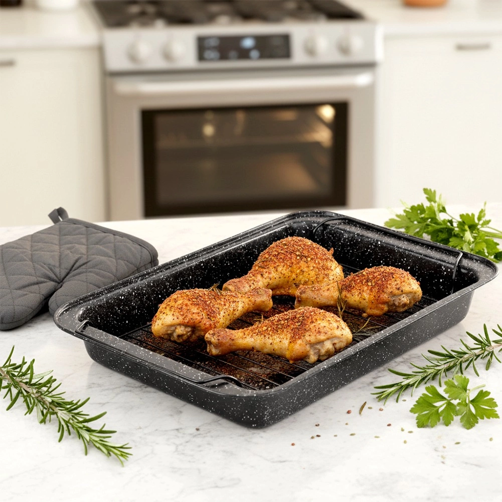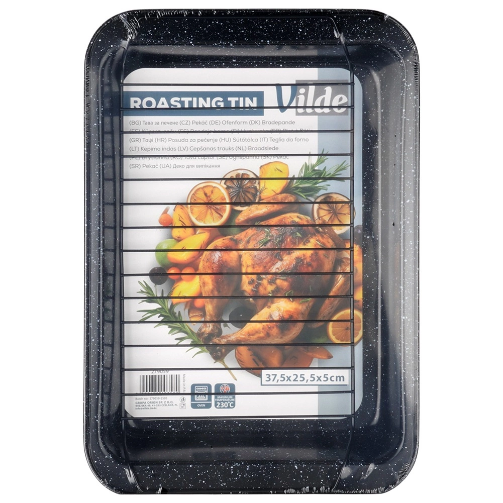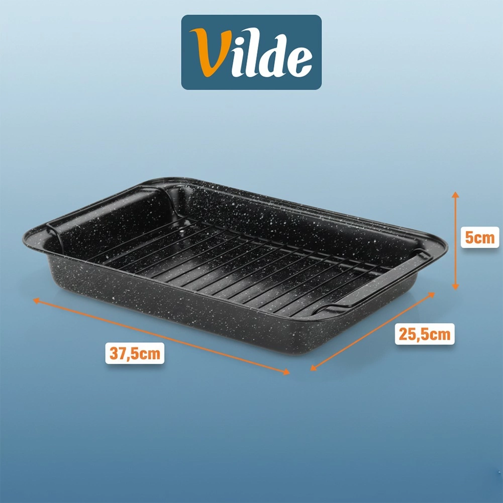 Oțelul de calitate asigură stabilitate și distribuție uniformă a căldurii. Dimensiunile 37,5 × 25,5 × 5 cm sunt ideale pentru coacerea cărnii, a păsării și a preparatelor gratinate.