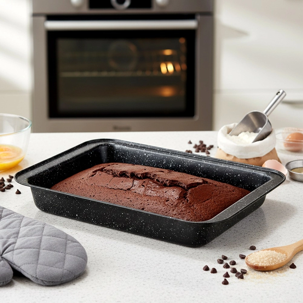Stratul de suprafață din granit, durabil, previne lipirea chiar și cu o cantitate minimă de ulei. Preparatele alunecă ușor din tavă, iar întreținerea este rapidă – se poate spăla în mașina de spălat vase.